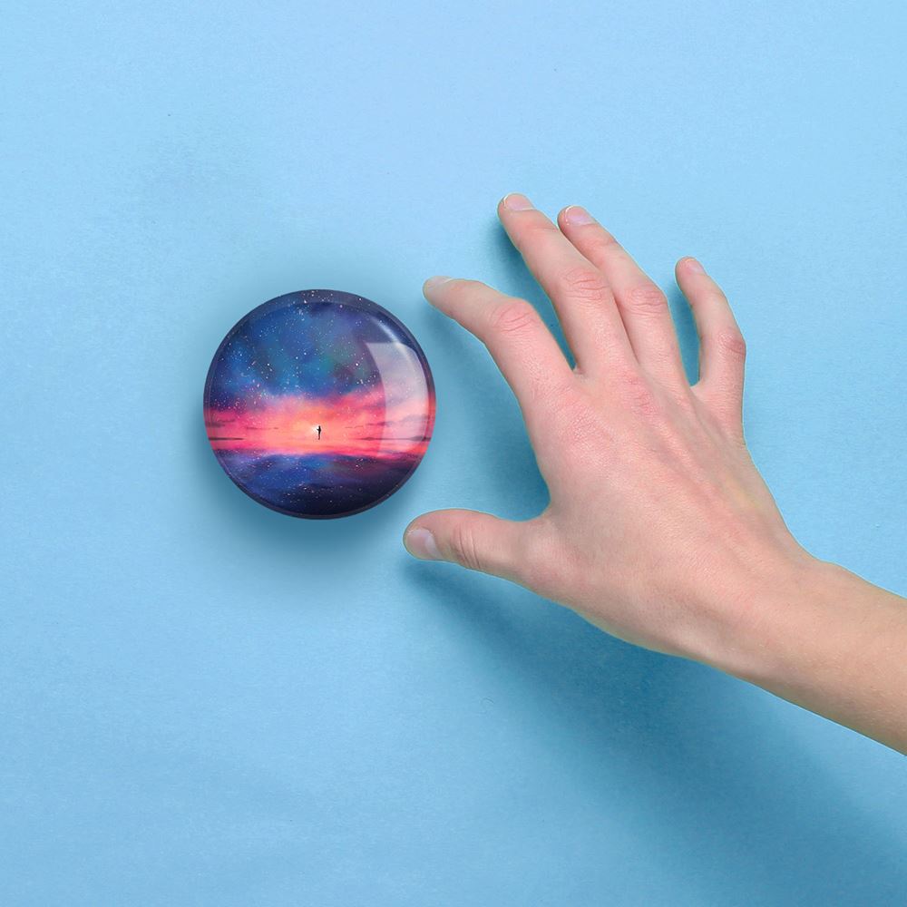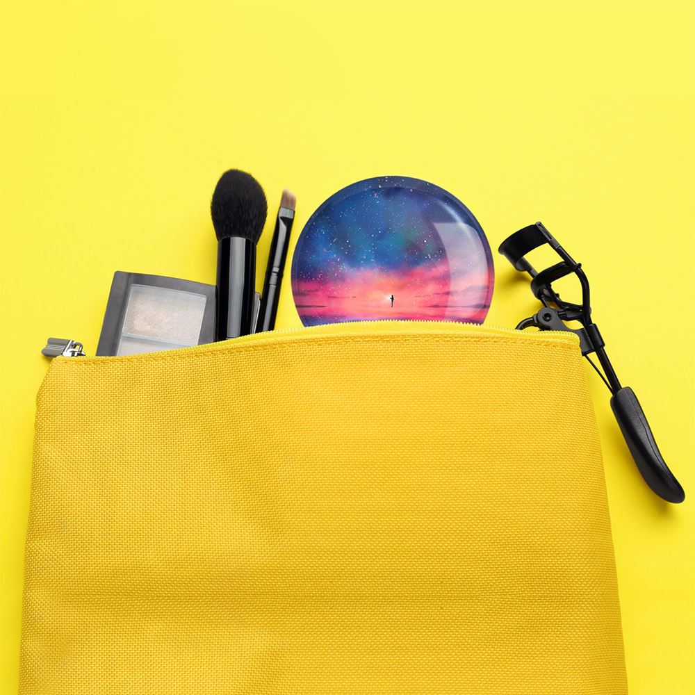 آینه های جیبی کهکشان و سیاره ها خندالو دایره ای به قطر 7.5 سانتی متر می باشد که نه خیلی بزرگ و غیر قابل استفاده در کیف آرایشی ست و نه خیلی کوچک که تصویر خاصی در آن مشاهده نشود. سایزی استاندارد و کارآمد دارد و مناسب قرار گیری در کیف لوازم آرایش و کیف های کوچک دستی نیز هست.