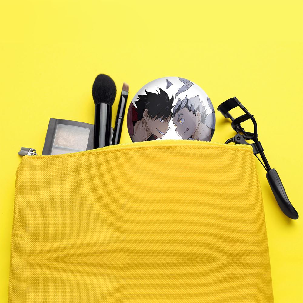 آینه های جیبی کوتارو و کورو انیمه هایکیو Haikyu خندالو دایره ای به قطر 7.5 سانتی متر می باشد که نه خیلی بزرگ و غیر قابل استفاده در کیف آرایشی ست و نه خیلی کوچک که تصویر خاصی در آن مشاهده نشود. سایزی استاندارد و کارآمد دارد و مناسب قرار گیری در کیف لوازم آرایش و کیف های کوچک دستی نیز هست. بدنه ی آینه جیبی کوتارو و کورو انیمه هایکیو Haikyu در قسمتی که آینه را در بر گرفته فلزی بوده و ظاهر براق و بسیار زیبایی دارد. چاپ طرح در پشت آینه بوسیله چاپگرهای دیجیتال شش رنگ با شفافیت و کیفیتی مثال زدنی انجام گرفته و با روکش لمینت حرارتی پوشیده شده که در مقابل آسیب و خط و خش مقاوم بوده و کیفیت بالایی دارد. آینه های جیبی کوتارو و کورو انیمه هایکیو Haikyu خندالو با تنوع طرحی بسیار بالا، سلیقه هر نوع مخاطبی را تامین میکند.
