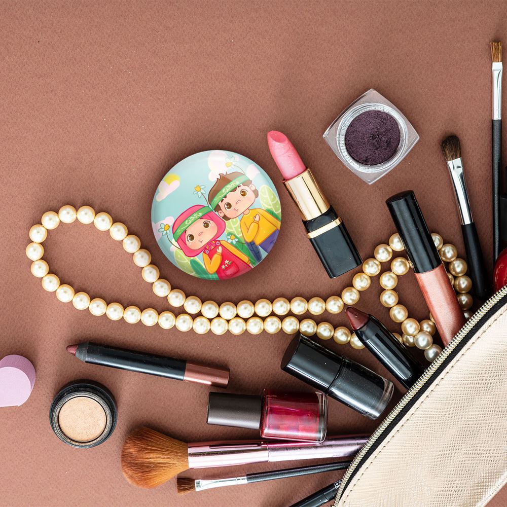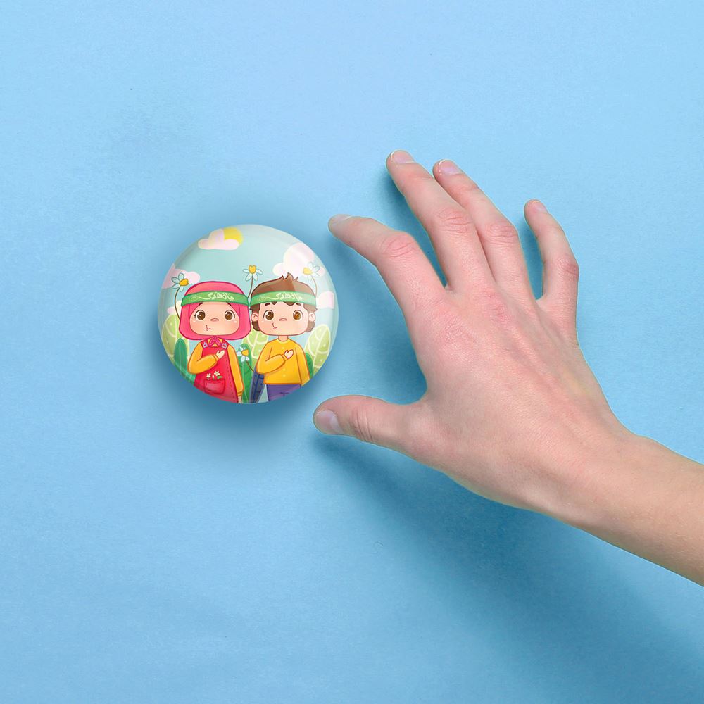 آینه های جیبی کودکانه محرم و اربعین امام حسین خندالو دایره ای به قطر 7.5 سانتی متر می باشد که نه خیلی بزرگ و غیر قابل استفاده در کیف آرایشی ست و نه خیلی کوچک که تصویر خاصی در آن مشاهده نشود. سایزی استاندارد و کارآمد دارد و مناسب قرار گیری در کیف لوازم آرایش و کیف های کوچک دستی نیز هست.