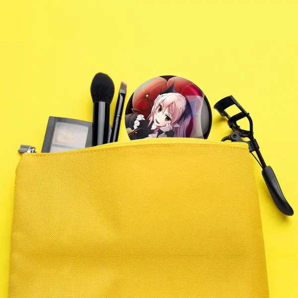 آینه های جیبی کورل تپس انیمه اسرافیل پایانی خندالو دایره ای به قطر 7.5 سانتی متر می باشد که نه خیلی بزرگ و غیر قابل استفاده در کیف آرایشی ست و نه خیلی کوچک که تصویر خاصی در آن مشاهده نشود. سایزی استاندارد و کارآمد دارد و مناسب قرار گیری در کیف لوازم آرایش و کیف های کوچک دستی نیز هست.