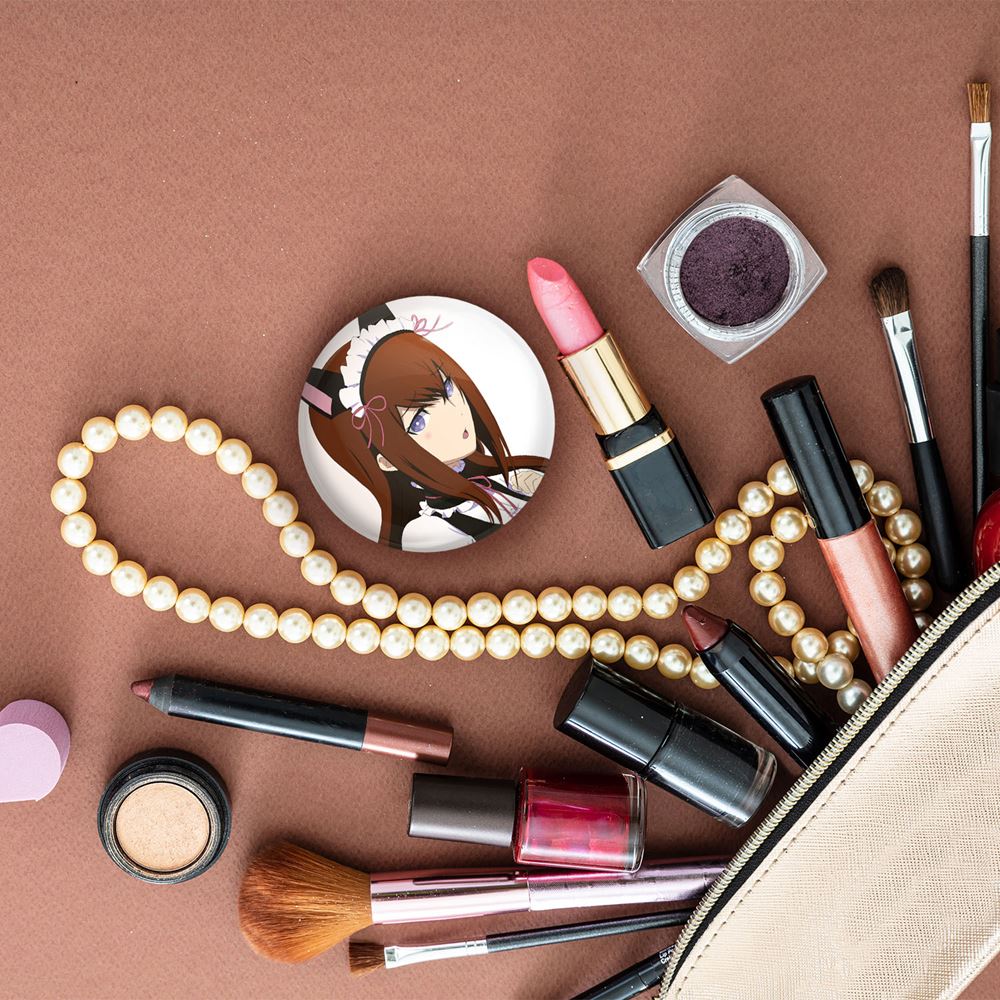 آینه های جیبی کوریسو ماکیسه انیمه اشتاینز گیت خندالو دایره ای به قطر 7.5 سانتی متر می باشد که نه خیلی بزرگ و غیر قابل استفاده در کیف آرایشی ست و نه خیلی کوچک که تصویر خاصی در آن مشاهده نشود. سایزی استاندارد و کارآمد دارد و مناسب قرار گیری در کیف لوازم آرایش و کیف های کوچک دستی نیز هست. بدنه ی آینه جیبی کوریسو ماکیسه انیمه اشتاینز گیت در قسمتی که آینه را در بر گرفته فلزی بوده و ظاهر براق و بسیار زیبایی دارد. چاپ طرح در پشت آینه بوسیله چاپگرهای دیجیتال شش رنگ با شفافیت و کیفیتی مثال زدنی انجام گرفته و با روکش لمینت حرارتی پوشیده شده که در مقابل آسیب و خط و خش مقاوم بوده و کیفیت بالایی دارد. آینه های جیبی کوریسو ماکیسه انیمه اشتاینز گیت خندالو با تنوع طرحی بسیار بالا، سلیقه هر نوع مخاطبی را تامین میکند.