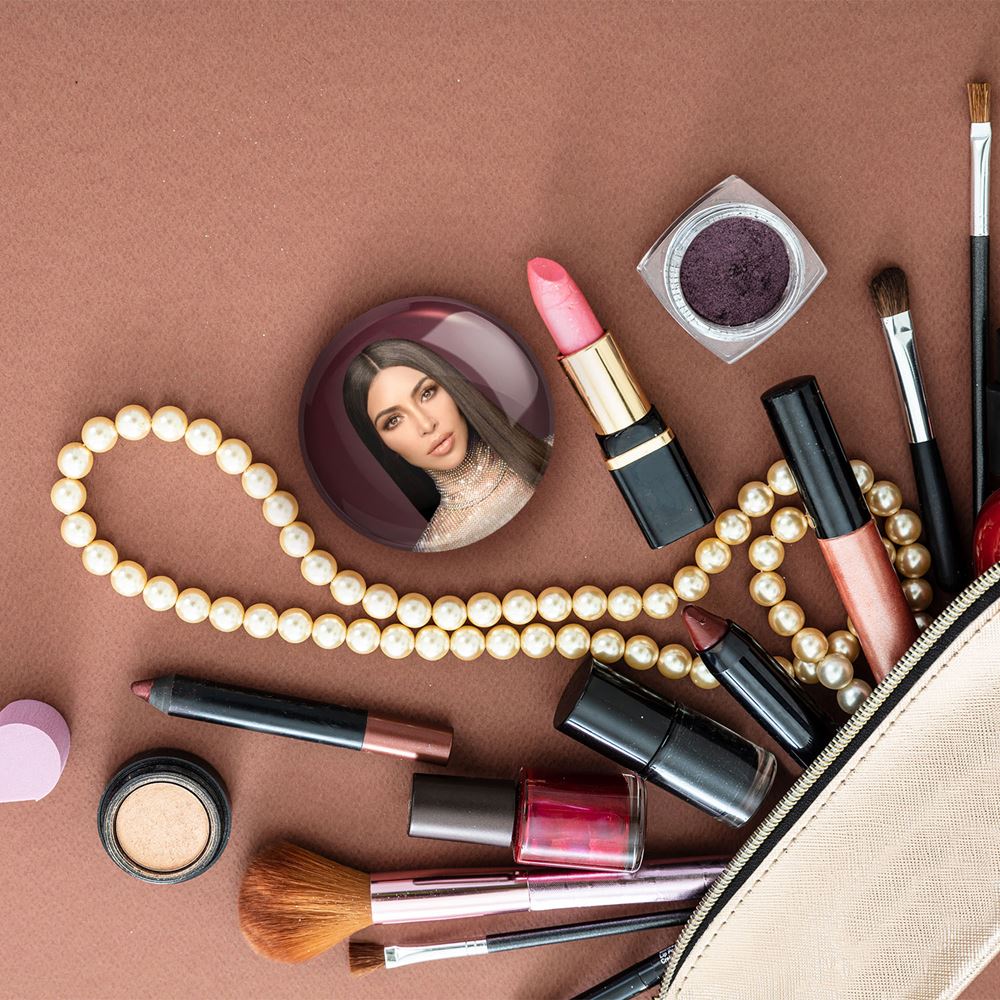 آینه های جیبی کیم کارداشیان Kim Kardashian خندالو دایره ای به قطر 7.5 سانتی متر می باشد که نه خیلی بزرگ و غیر قابل استفاده در کیف آرایشی ست و نه خیلی کوچک که تصویر خاصی در آن مشاهده نشود. سایزی استاندارد و کارآمد دارد و مناسب قرار گیری در کیف لوازم آرایش و کیف های کوچک دستی نیز هست. بدنه ی آینه جیبی کیم کارداشیان Kim Kardashian در قسمتی که آینه را در بر گرفته فلزی بوده و ظاهر براق و بسیار زیبایی دارد. چاپ طرح در پشت آینه بوسیله چاپگرهای دیجیتال شش رنگ با شفافیت و کیفیتی مثال زدنی انجام گرفته و با روکش لمینت حرارتی پوشیده شده که در مقابل آسیب و خط و خش مقاوم بوده و کیفیت بالایی دارد. آینه های جیبی کیم کارداشیان Kim Kardashian خندالو با تنوع طرحی بسیار بالا، سلیقه هر نوع مخاطبی را تامین میکند.