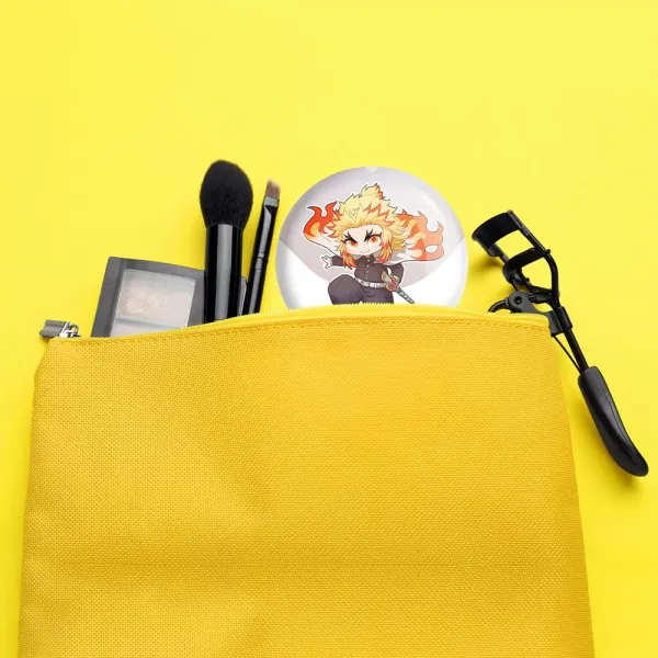 آینه های جیبی کیوجورو رنگوکو انیمه شیطان کش خندالو دایره ای به قطر 7.5 سانتی متر می باشد که نه خیلی بزرگ و غیر قابل استفاده در کیف آرایشی ست و نه خیلی کوچک که تصویر خاصی در آن مشاهده نشود. سایزی استاندارد و کارآمد دارد و مناسب قرار گیری در کیف لوازم آرایش و کیف های کوچک دستی نیز هست. بدنه ی آینه جیبی کیوجورو رنگوکو انیمه شیطان کش در قسمتی که آینه را در بر گرفته فلزی بوده و ظاهر براق و بسیار زیبایی دارد. چاپ طرح در پشت آینه بوسیله چاپگرهای دیجیتال شش رنگ با شفافیت و کیفیتی مثال زدنی انجام گرفته و با روکش لمینت حرارتی پوشیده شده که در مقابل آسیب و خط و خش مقاوم بوده و کیفیت بالایی دارد. آینه های جیبی کیوجورو رنگوکو انیمه شیطان کش خندالو با تنوع طرحی بسیار بالا، سلیقه هر نوع مخاطبی را تامین میکند.
