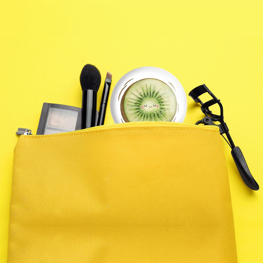 آینه های جیبی کیوی خندالو دایره ای به قطر 7.5 سانتی متر می باشد که نه خیلی بزرگ و غیر قابل استفاده در کیف آرایشی ست و نه خیلی کوچک که تصویر خاصی در آن مشاهده نشود. سایزی استاندارد و کارآمد دارد و مناسب قرار گیری در کیف لوازم آرایش و کیف های کوچک دستی نیز هست. بدنه ی آینه جیبی کیوی در قسمتی که آینه را در بر گرفته فلزی بوده و ظاهر براق و بسیار زیبایی دارد. چاپ طرح در پشت آینه بوسیله چاپگرهای دیجیتال شش رنگ با شفافیت و کیفیتی مثال زدنی انجام گرفته و با روکش لمینت حرارتی پوشیده شده که در مقابل آسیب و خط و خش مقاوم بوده و کیفیت بالایی دارد. آینه های جیبی کیوی خندالو با تنوع طرحی بسیار بالا، سلیقه هر نوع مخاطبی را تامین میکند.