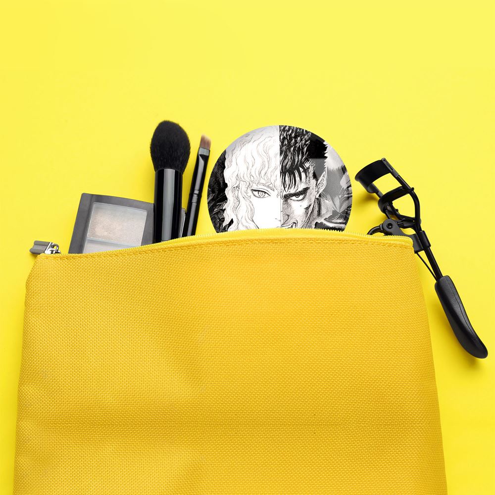 آینه های جیبی گاتس و گریفیث انیمه برزرک Berserk خندالو دایره ای به قطر 7.5 سانتی متر می باشد که نه خیلی بزرگ و غیر قابل استفاده در کیف آرایشی ست و نه خیلی کوچک که تصویر خاصی در آن مشاهده نشود. سایزی استاندارد و کارآمد دارد و مناسب قرار گیری در کیف لوازم آرایش و کیف های کوچک دستی نیز هست. بدنه ی آینه جیبی گاتس و گریفیث انیمه برزرک Berserk در قسمتی که آینه را در بر گرفته فلزی بوده و ظاهر براق و بسیار زیبایی دارد. چاپ طرح در پشت آینه بوسیله چاپگرهای دیجیتال شش رنگ با شفافیت و کیفیتی مثال زدنی انجام گرفته و با روکش لمینت حرارتی پوشیده شده که در مقابل آسیب و خط و خش مقاوم بوده و کیفیت بالایی دارد. آینه های جیبی گاتس و گریفیث انیمه برزرک Berserk خندالو با تنوع طرحی بسیار بالا، سلیقه هر نوع مخاطبی را تامین میکند.