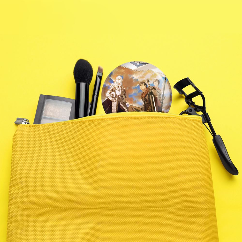 آینه های جیبی گاتس و گریفیث و دوستان انیمه برزرک Berserk خندالو دایره ای به قطر 7.5 سانتی متر می باشد که نه خیلی بزرگ و غیر قابل استفاده در کیف آرایشی ست و نه خیلی کوچک که تصویر خاصی در آن مشاهده نشود. سایزی استاندارد و کارآمد دارد و مناسب قرار گیری در کیف لوازم آرایش و کیف های کوچک دستی نیز هست. بدنه ی آینه جیبی گاتس و گریفیث و دوستان انیمه برزرک Berserk در قسمتی که آینه را در بر گرفته فلزی بوده و ظاهر براق و بسیار زیبایی دارد. چاپ طرح در پشت آینه بوسیله چاپگرهای دیجیتال شش رنگ با شفافیت و کیفیتی مثال زدنی انجام گرفته و با روکش لمینت حرارتی پوشیده شده که در مقابل آسیب و خط و خش مقاوم بوده و کیفیت بالایی دارد. آینه های جیبی گاتس و گریفیث و دوستان انیمه برزرک Berserk خندالو با تنوع طرحی بسیار بالا، سلیقه هر نوع مخاطبی را تامین میکند.