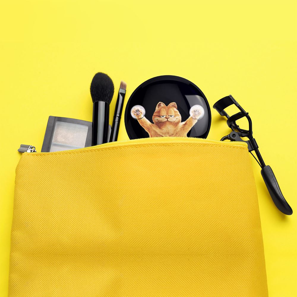 آینه های جیبی گارفیلد Garfield خندالو دایره ای به قطر 7.5 سانتی متر می باشد که نه خیلی بزرگ و غیر قابل استفاده در کیف آرایشی ست و نه خیلی کوچک که تصویر خاصی در آن مشاهده نشود. سایزی استاندارد و کارآمد دارد و مناسب قرار گیری در کیف لوازم آرایش و کیف های کوچک دستی نیز هست.