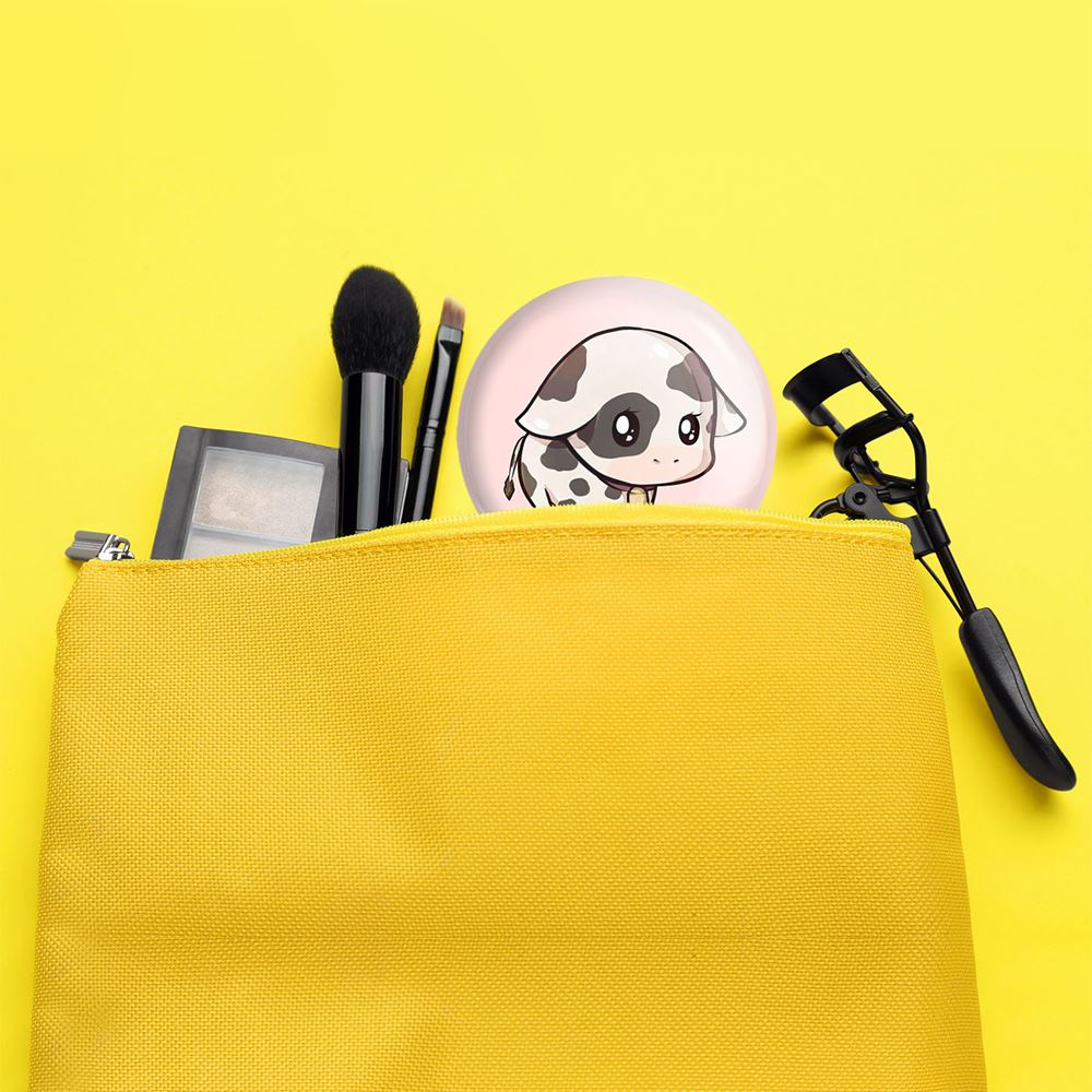 آینه های جیبی گاو خندالو دایره ای به قطر 7.5 سانتی متر می باشد که نه خیلی بزرگ و غیر قابل استفاده در کیف آرایشی ست و نه خیلی کوچک که تصویر خاصی در آن مشاهده نشود. سایزی استاندارد و کارآمد دارد و مناسب قرار گیری در کیف لوازم آرایش و کیف های کوچک دستی نیز هست.