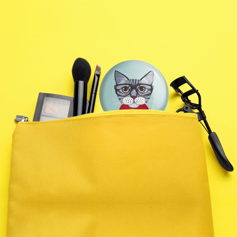 آینه های جیبی گربه خندالو دایره ای به قطر 7.5 سانتی متر می باشد که نه خیلی بزرگ و غیر قابل استفاده در کیف آرایشی ست و نه خیلی کوچک که تصویر خاصی در آن مشاهده نشود. سایزی استاندارد و کارآمد دارد و مناسب قرار گیری در کیف لوازم آرایش و کیف های کوچک دستی نیز هست.