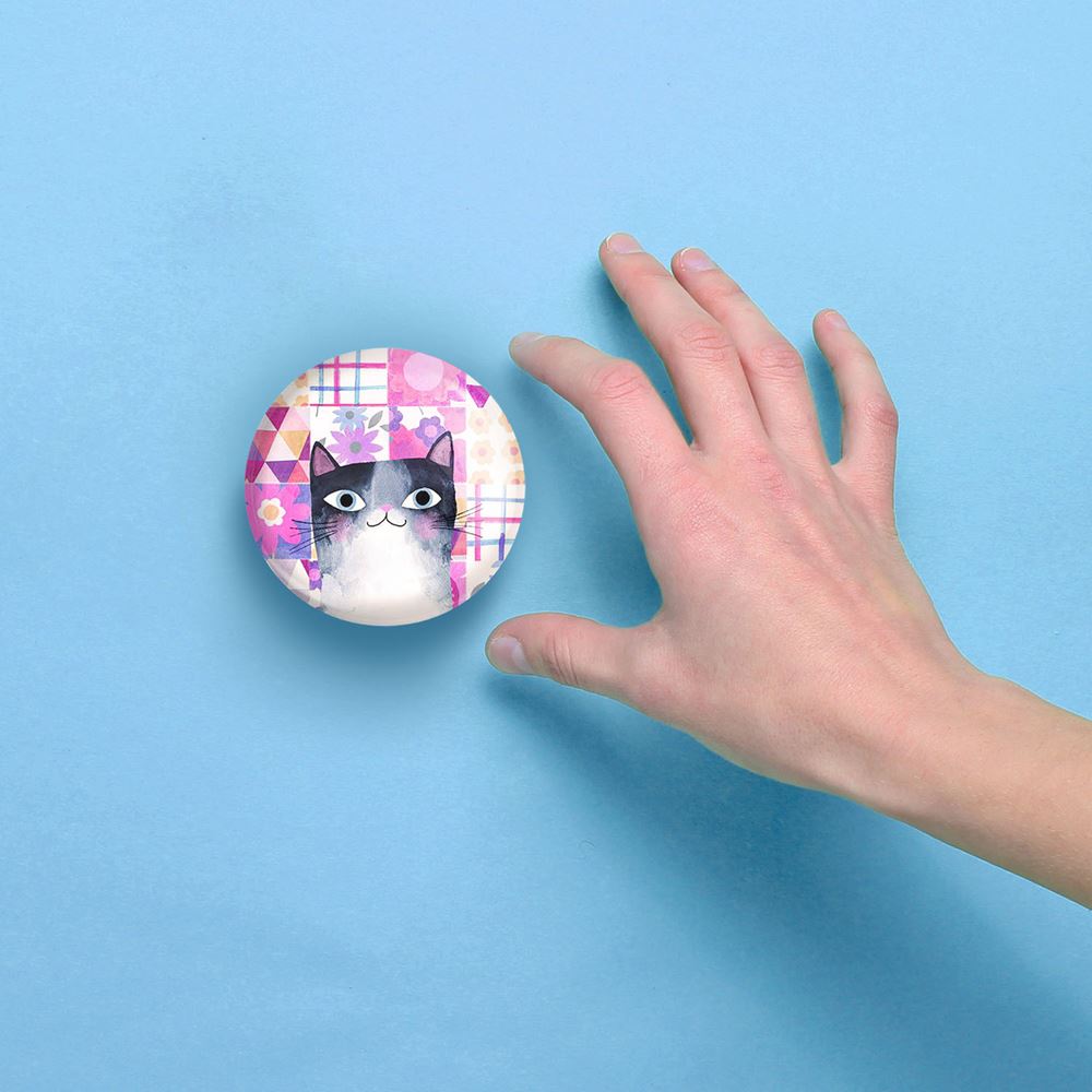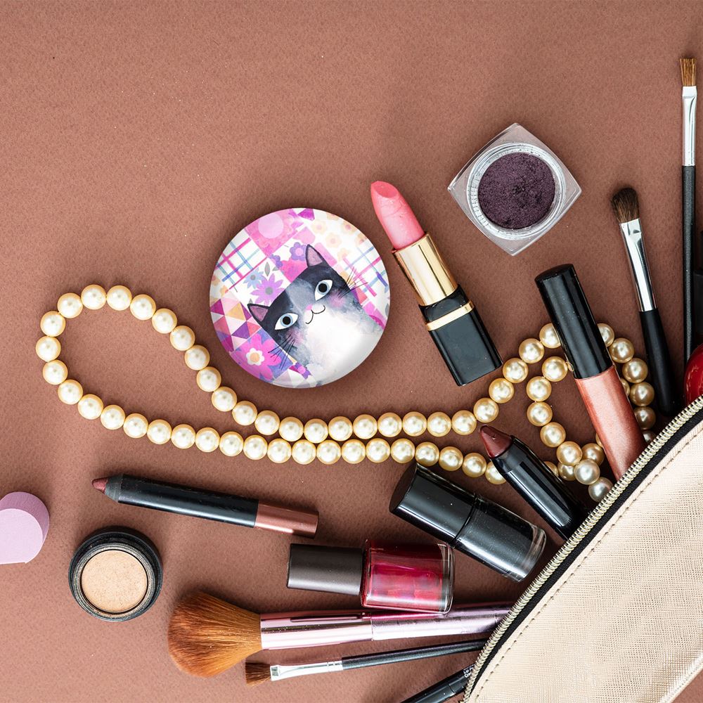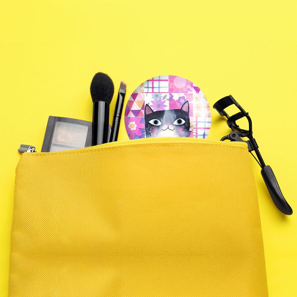 آینه های جیبی گربه خندالو دایره ای به قطر 7.5 سانتی متر می باشد که نه خیلی بزرگ و غیر قابل استفاده در کیف آرایشی ست و نه خیلی کوچک که تصویر خاصی در آن مشاهده نشود. سایزی استاندارد و کارآمد دارد و مناسب قرار گیری در کیف لوازم آرایش و کیف های کوچک دستی نیز هست.