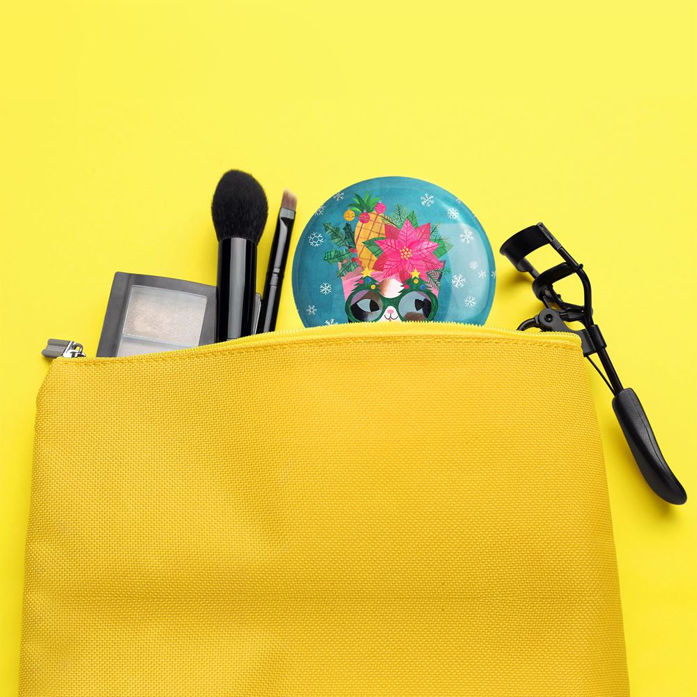 آینه های جیبی گربه خندالو دایره ای به قطر 7.5 سانتی متر می باشد که نه خیلی بزرگ و غیر قابل استفاده در کیف آرایشی ست و نه خیلی کوچک که تصویر خاصی در آن مشاهده نشود. سایزی استاندارد و کارآمد دارد و مناسب قرار گیری در کیف لوازم آرایش و کیف های کوچک دستی نیز هست.