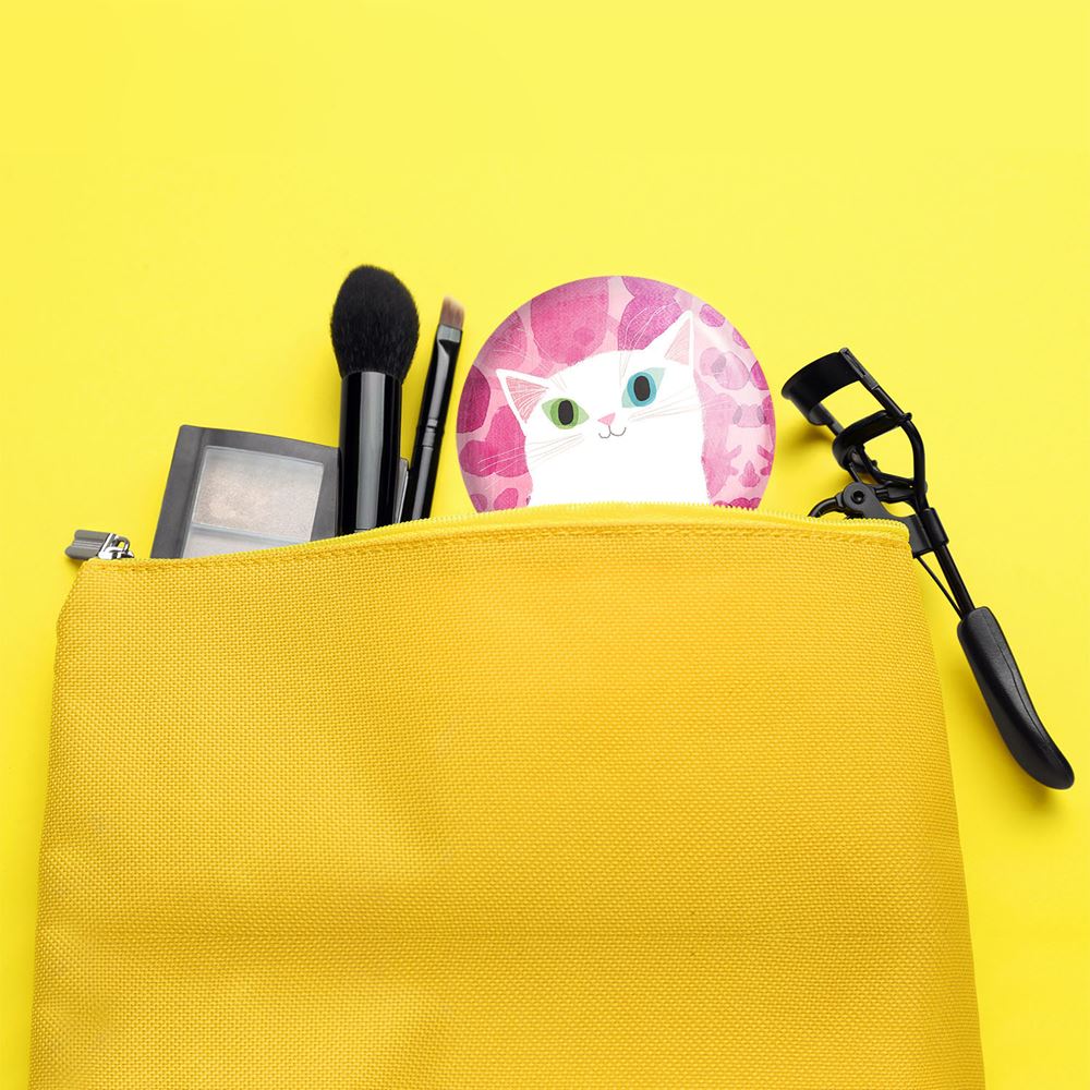آینه های جیبی گربه خندالو دایره ای به قطر 7.5 سانتی متر می باشد که نه خیلی بزرگ و غیر قابل استفاده در کیف آرایشی ست و نه خیلی کوچک که تصویر خاصی در آن مشاهده نشود. سایزی استاندارد و کارآمد دارد و مناسب قرار گیری در کیف لوازم آرایش و کیف های کوچک دستی نیز هست.