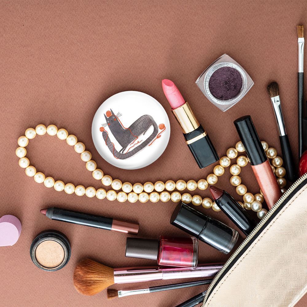 آینه های جیبی گربه خندالو دایره ای به قطر 7.5 سانتی متر می باشد که نه خیلی بزرگ و غیر قابل استفاده در کیف آرایشی ست و نه خیلی کوچک که تصویر خاصی در آن مشاهده نشود. سایزی استاندارد و کارآمد دارد و مناسب قرار گیری در کیف لوازم آرایش و کیف های کوچک دستی نیز هست.