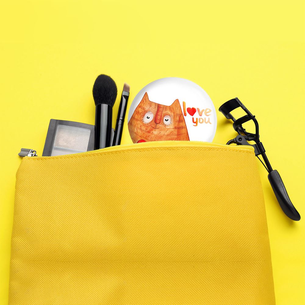 آینه های جیبی گربه خندالو دایره ای به قطر 7.5 سانتی متر می باشد که نه خیلی بزرگ و غیر قابل استفاده در کیف آرایشی ست و نه خیلی کوچک که تصویر خاصی در آن مشاهده نشود. سایزی استاندارد و کارآمد دارد و مناسب قرار گیری در کیف لوازم آرایش و کیف های کوچک دستی نیز هست.