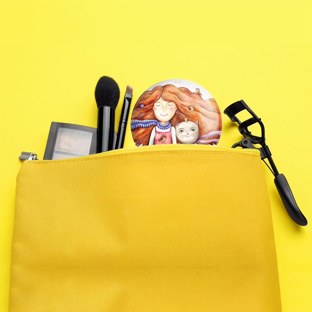 آینه های جیبی گربه خندالو دایره ای به قطر 7.5 سانتی متر می باشد که نه خیلی بزرگ و غیر قابل استفاده در کیف آرایشی ست و نه خیلی کوچک که تصویر خاصی در آن مشاهده نشود. سایزی استاندارد و کارآمد دارد و مناسب قرار گیری در کیف لوازم آرایش و کیف های کوچک دستی نیز هست. بدنه ی آینه جیبی گربه در قسمتی که آینه را در بر گرفته فلزی بوده و ظاهر براق و بسیار زیبایی دارد. چاپ طرح در پشت آینه بوسیله چاپگرهای دیجیتال شش رنگ با شفافیت و کیفیتی مثال زدنی انجام گرفته و با روکش لمینت حرارتی پوشیده شده که در مقابل آسیب و خط و خش مقاوم بوده و کیفیت بالایی دارد. آینه های جیبی گربه خندالو با تنوع طرحی بسیار بالا، سلیقه هر نوع مخاطبی را تامین میکند.
