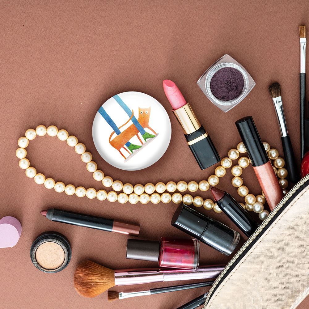 آینه های جیبی گربه خندالو دایره ای به قطر 7.5 سانتی متر می باشد که نه خیلی بزرگ و غیر قابل استفاده در کیف آرایشی ست و نه خیلی کوچک که تصویر خاصی در آن مشاهده نشود. سایزی استاندارد و کارآمد دارد و مناسب قرار گیری در کیف لوازم آرایش و کیف های کوچک دستی نیز هست.