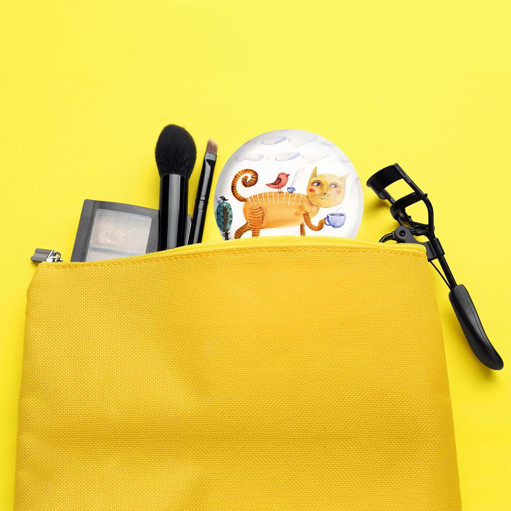 آینه های جیبی گربه خندالو دایره ای به قطر 7.5 سانتی متر می باشد که نه خیلی بزرگ و غیر قابل استفاده در کیف آرایشی ست و نه خیلی کوچک که تصویر خاصی در آن مشاهده نشود. سایزی استاندارد و کارآمد دارد و مناسب قرار گیری در کیف لوازم آرایش و کیف های کوچک دستی نیز هست.