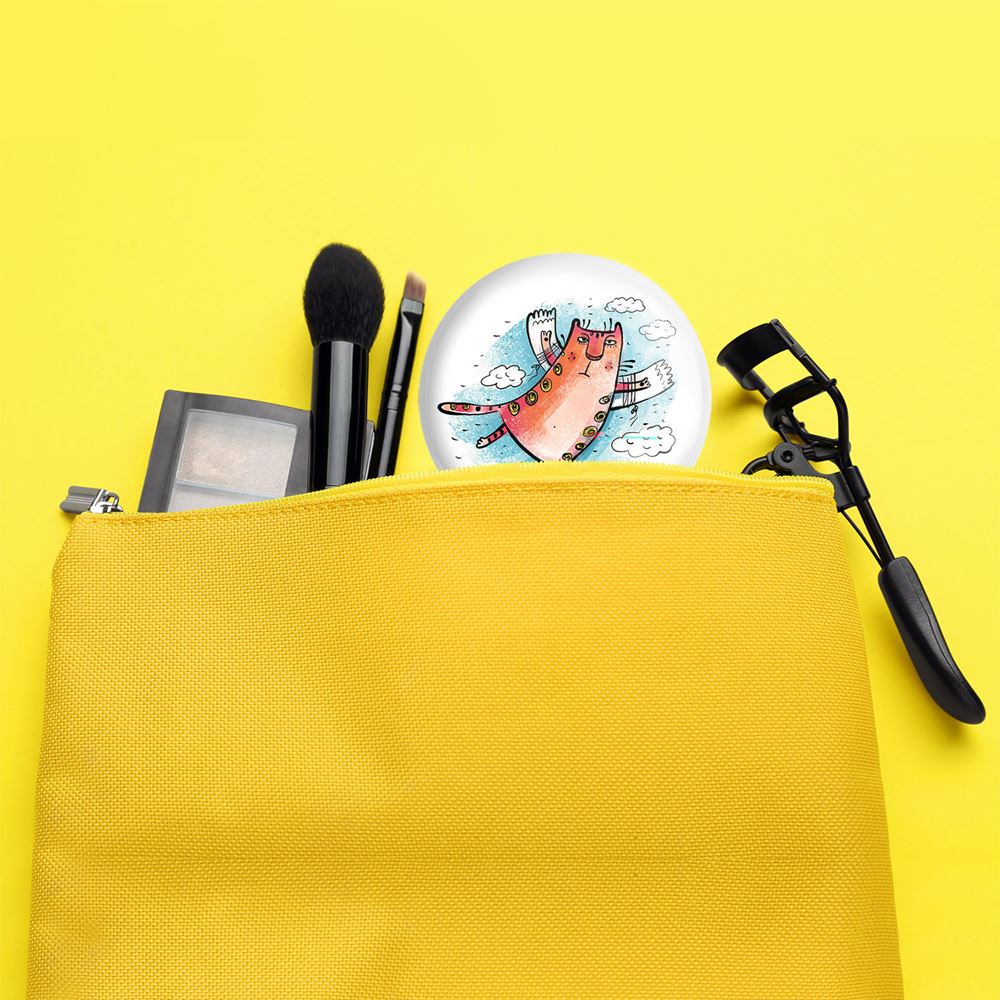 آینه های جیبی گربه خندالو دایره ای به قطر 7.5 سانتی متر می باشد که نه خیلی بزرگ و غیر قابل استفاده در کیف آرایشی ست و نه خیلی کوچک که تصویر خاصی در آن مشاهده نشود. سایزی استاندارد و کارآمد دارد و مناسب قرار گیری در کیف لوازم آرایش و کیف های کوچک دستی نیز هست.
