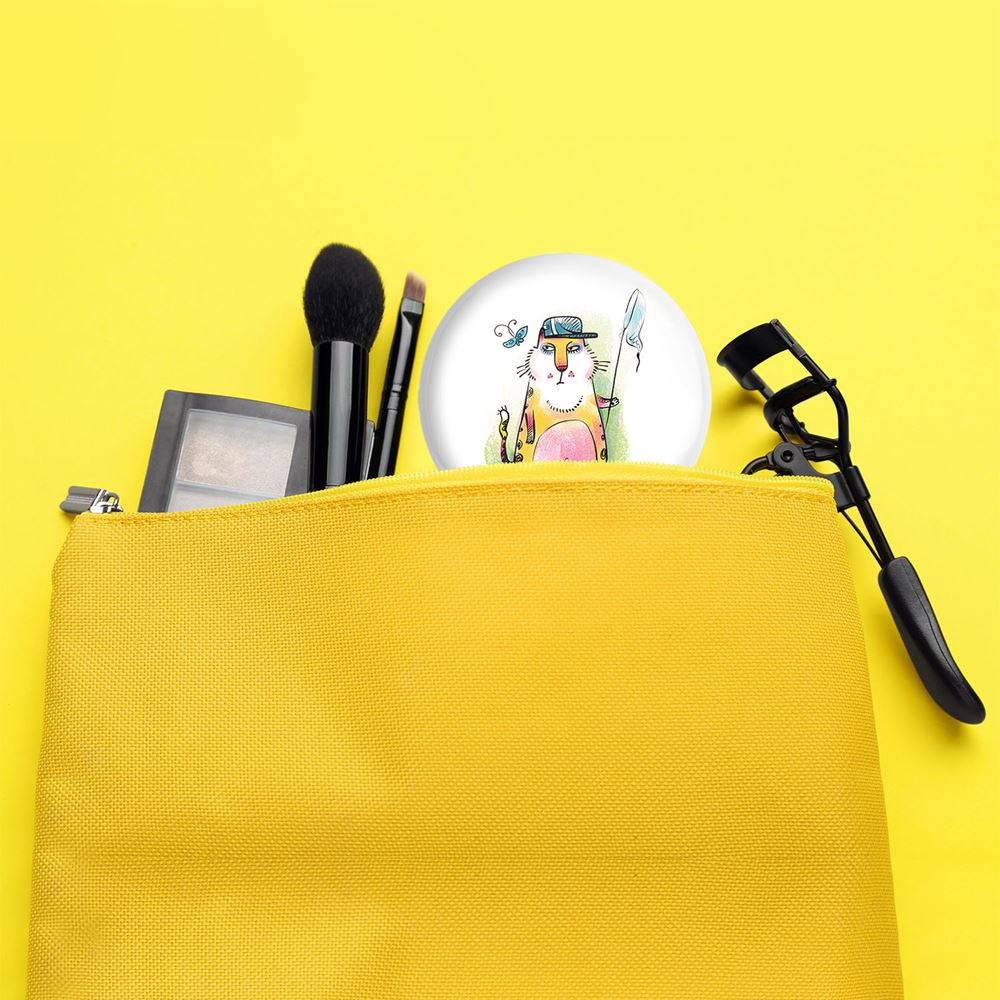 آینه های جیبی گربه خندالو دایره ای به قطر 7.5 سانتی متر می باشد که نه خیلی بزرگ و غیر قابل استفاده در کیف آرایشی ست و نه خیلی کوچک که تصویر خاصی در آن مشاهده نشود. سایزی استاندارد و کارآمد دارد و مناسب قرار گیری در کیف لوازم آرایش و کیف های کوچک دستی نیز هست.