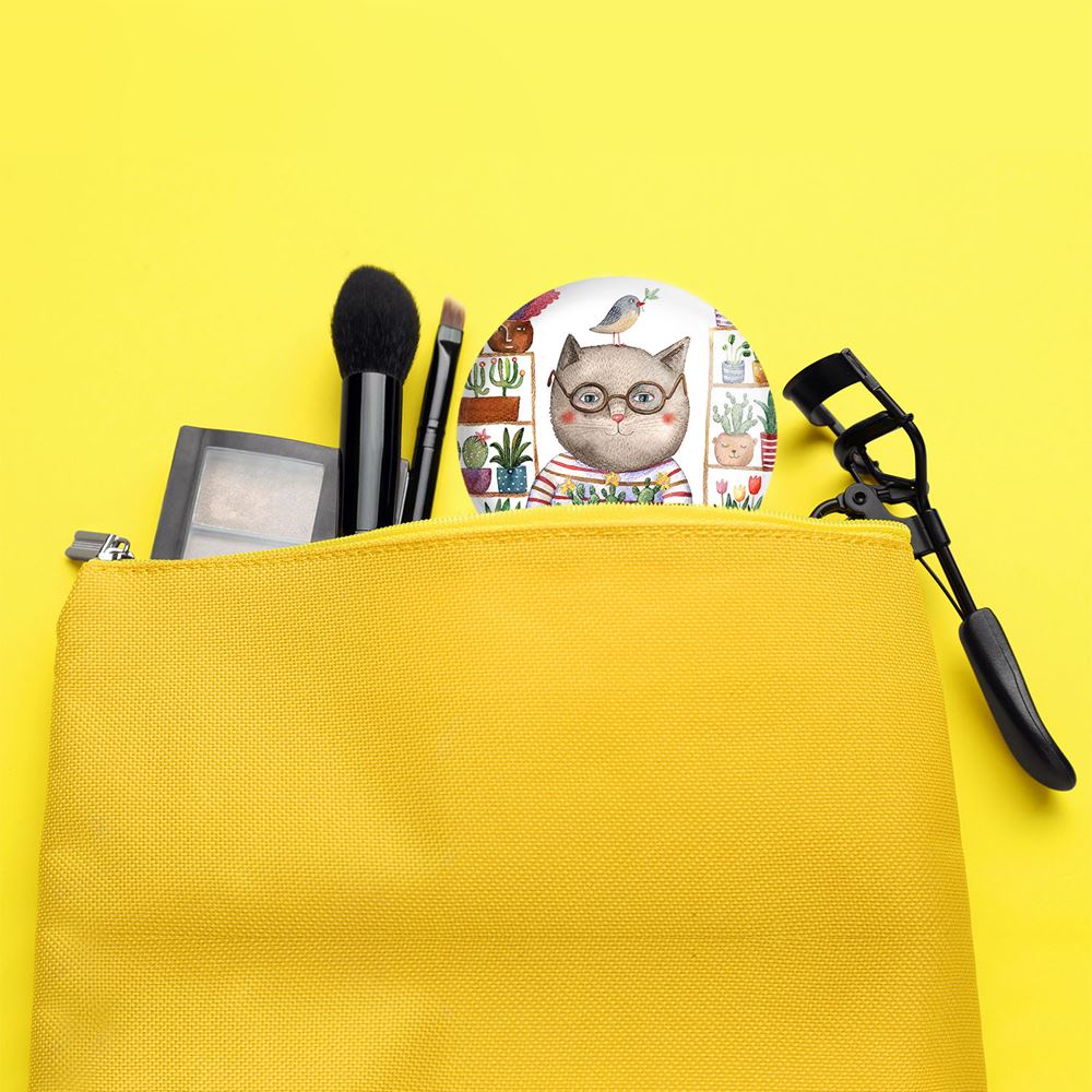 آینه های جیبی گربه خندالو دایره ای به قطر 7.5 سانتی متر می باشد که نه خیلی بزرگ و غیر قابل استفاده در کیف آرایشی ست و نه خیلی کوچک که تصویر خاصی در آن مشاهده نشود. سایزی استاندارد و کارآمد دارد و مناسب قرار گیری در کیف لوازم آرایش و کیف های کوچک دستی نیز هست.
