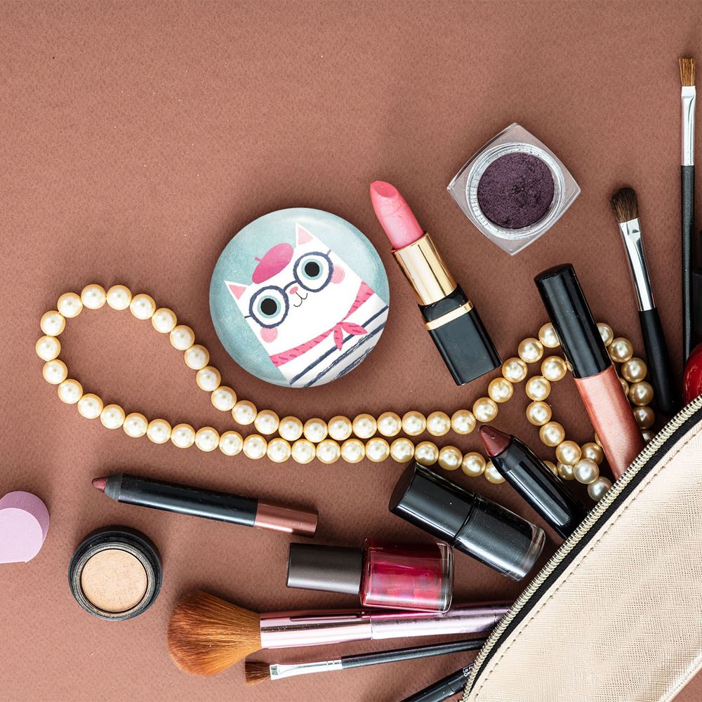 آینه های جیبی گربه خندالو دایره ای به قطر 7.5 سانتی متر می باشد که نه خیلی بزرگ و غیر قابل استفاده در کیف آرایشی ست و نه خیلی کوچک که تصویر خاصی در آن مشاهده نشود. سایزی استاندارد و کارآمد دارد و مناسب قرار گیری در کیف لوازم آرایش و کیف های کوچک دستی نیز هست.