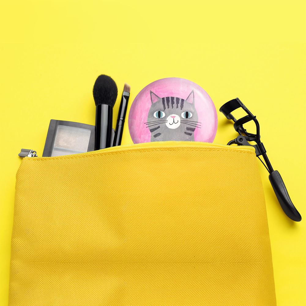 آینه های جیبی گربه خندالو دایره ای به قطر 7.5 سانتی متر می باشد که نه خیلی بزرگ و غیر قابل استفاده در کیف آرایشی ست و نه خیلی کوچک که تصویر خاصی در آن مشاهده نشود. سایزی استاندارد و کارآمد دارد و مناسب قرار گیری در کیف لوازم آرایش و کیف های کوچک دستی نیز هست.