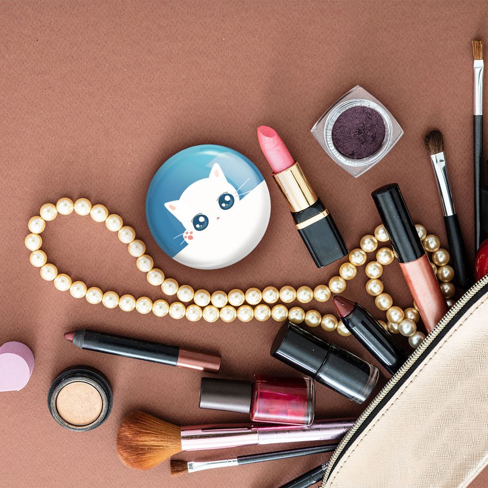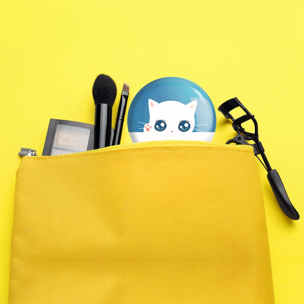 آینه های جیبی گربه Cat خندالو دایره ای به قطر 7.5 سانتی متر می باشد که نه خیلی بزرگ و غیر قابل استفاده در کیف آرایشی ست و نه خیلی کوچک که تصویر خاصی در آن مشاهده نشود. سایزی استاندارد و کارآمد دارد و مناسب قرار گیری در کیف لوازم آرایش و کیف های کوچک دستی نیز هست.