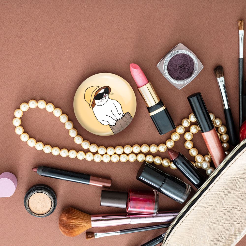 آینه های جیبی گربه Cat خندالو دایره ای به قطر 7.5 سانتی متر می باشد که نه خیلی بزرگ و غیر قابل استفاده در کیف آرایشی ست و نه خیلی کوچک که تصویر خاصی در آن مشاهده نشود. سایزی استاندارد و کارآمد دارد و مناسب قرار گیری در کیف لوازم آرایش و کیف های کوچک دستی نیز هست.
