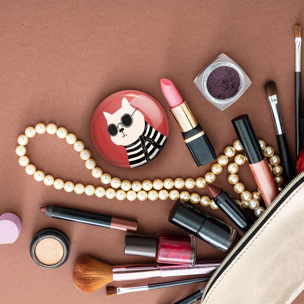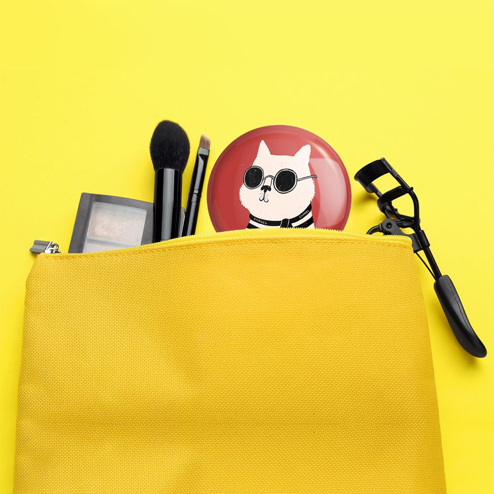 آینه های جیبی گربه Cat خندالو دایره ای به قطر 7.5 سانتی متر می باشد که نه خیلی بزرگ و غیر قابل استفاده در کیف آرایشی ست و نه خیلی کوچک که تصویر خاصی در آن مشاهده نشود. سایزی استاندارد و کارآمد دارد و مناسب قرار گیری در کیف لوازم آرایش و کیف های کوچک دستی نیز هست.