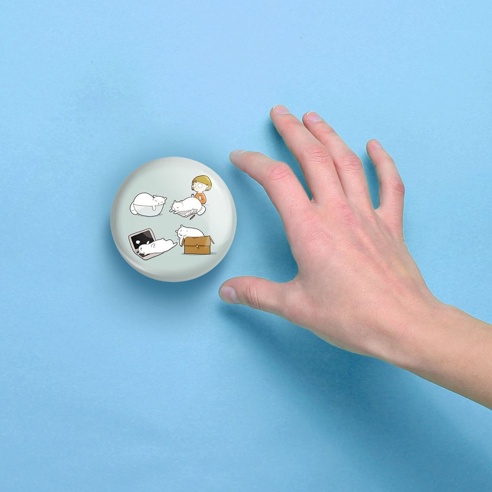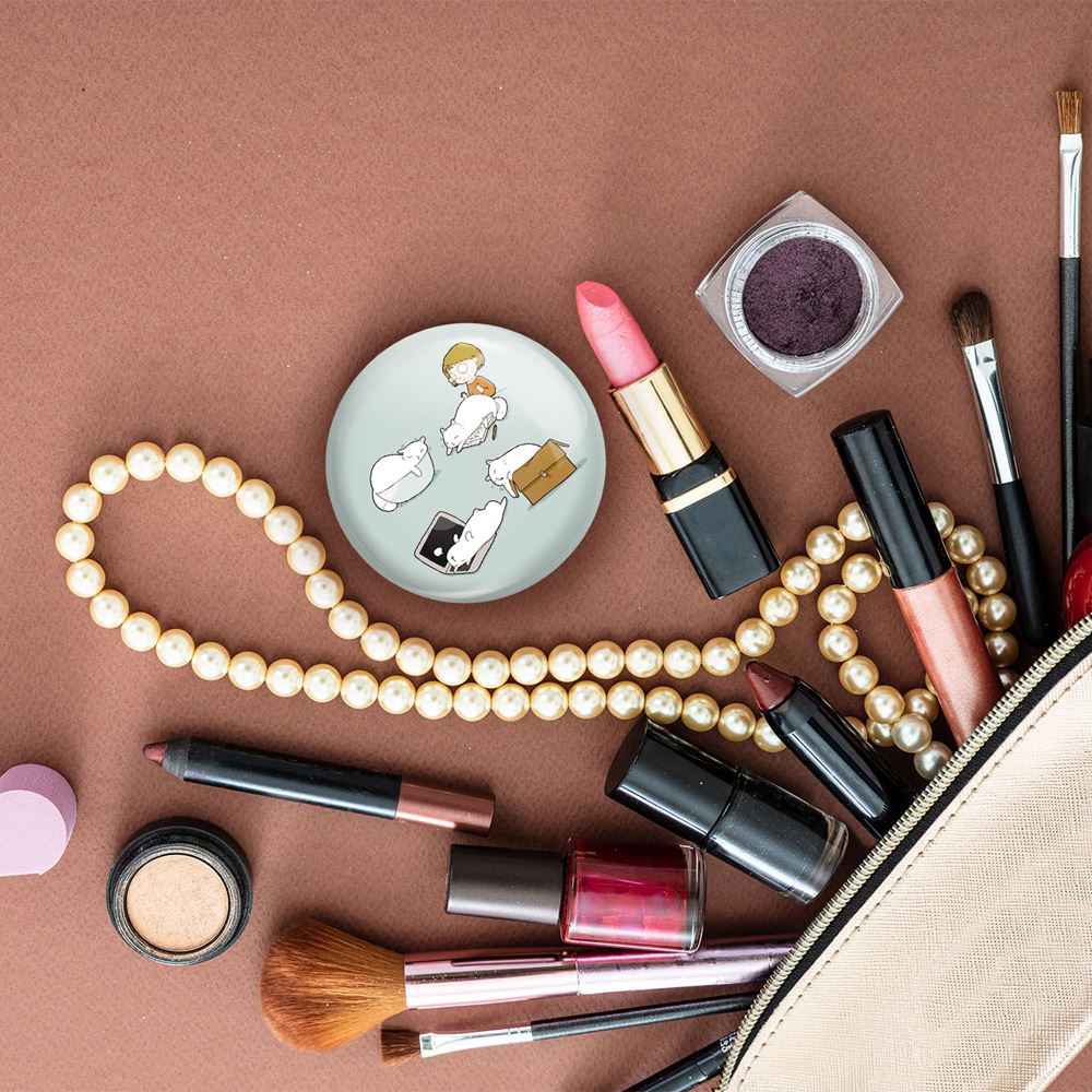 آینه های جیبی گربه Cat خندالو دایره ای به قطر 7.5 سانتی متر می باشد که نه خیلی بزرگ و غیر قابل استفاده در کیف آرایشی ست و نه خیلی کوچک که تصویر خاصی در آن مشاهده نشود. سایزی استاندارد و کارآمد دارد و مناسب قرار گیری در کیف لوازم آرایش و کیف های کوچک دستی نیز هست.