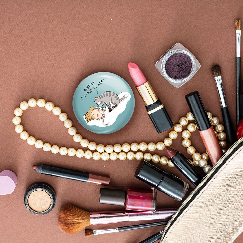 آینه های جیبی گربه Cat خندالو دایره ای به قطر 7.5 سانتی متر می باشد که نه خیلی بزرگ و غیر قابل استفاده در کیف آرایشی ست و نه خیلی کوچک که تصویر خاصی در آن مشاهده نشود. سایزی استاندارد و کارآمد دارد و مناسب قرار گیری در کیف لوازم آرایش و کیف های کوچک دستی نیز هست.