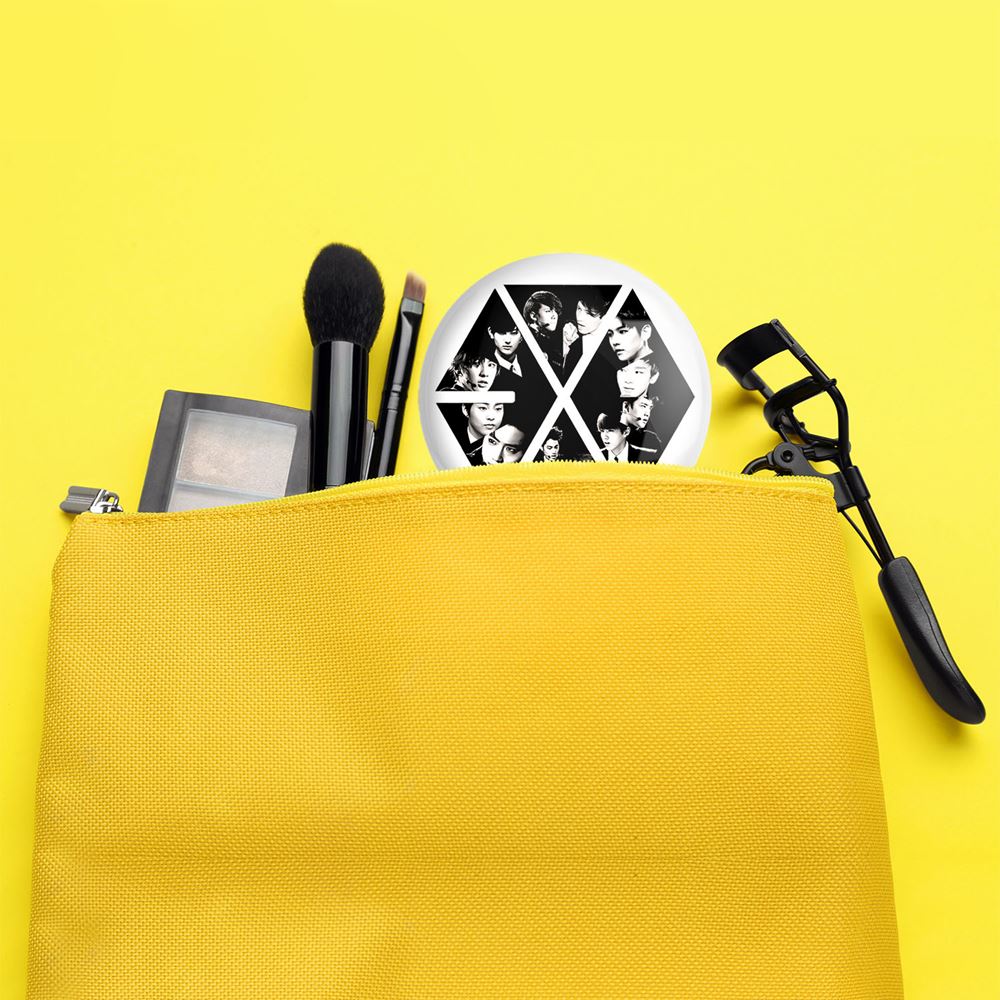 آینه های جیبی گروه اکسو EXO خندالو دایره ای به قطر 7.5 سانتی متر می باشد که نه خیلی بزرگ و غیر قابل استفاده در کیف آرایشی ست و نه خیلی کوچک که تصویر خاصی در آن مشاهده نشود. سایزی استاندارد و کارآمد دارد و مناسب قرار گیری در کیف لوازم آرایش و کیف های کوچک دستی نیز هست.