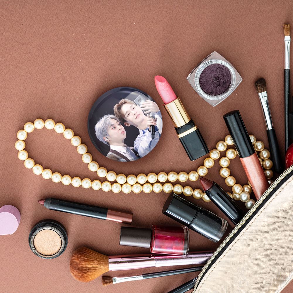 آینه های جیبی گروه اکسو EXO خندالو دایره ای به قطر 7.5 سانتی متر می باشد که نه خیلی بزرگ و غیر قابل استفاده در کیف آرایشی ست و نه خیلی کوچک که تصویر خاصی در آن مشاهده نشود. سایزی استاندارد و کارآمد دارد و مناسب قرار گیری در کیف لوازم آرایش و کیف های کوچک دستی نیز هست.