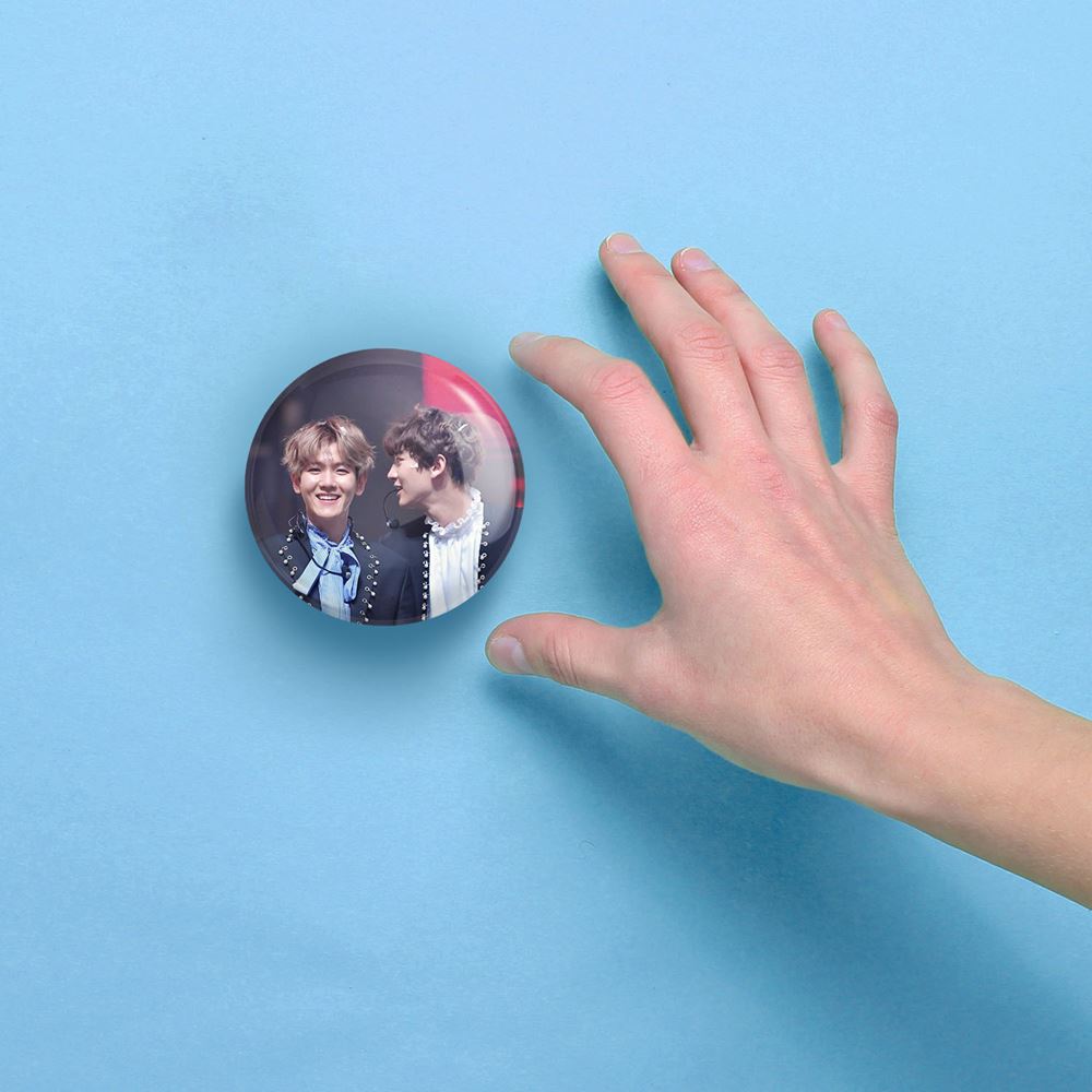 آینه های جیبی گروه اکسو EXO خندالو دایره ای به قطر 7.5 سانتی متر می باشد که نه خیلی بزرگ و غیر قابل استفاده در کیف آرایشی ست و نه خیلی کوچک که تصویر خاصی در آن مشاهده نشود. سایزی استاندارد و کارآمد دارد و مناسب قرار گیری در کیف لوازم آرایش و کیف های کوچک دستی نیز هست.