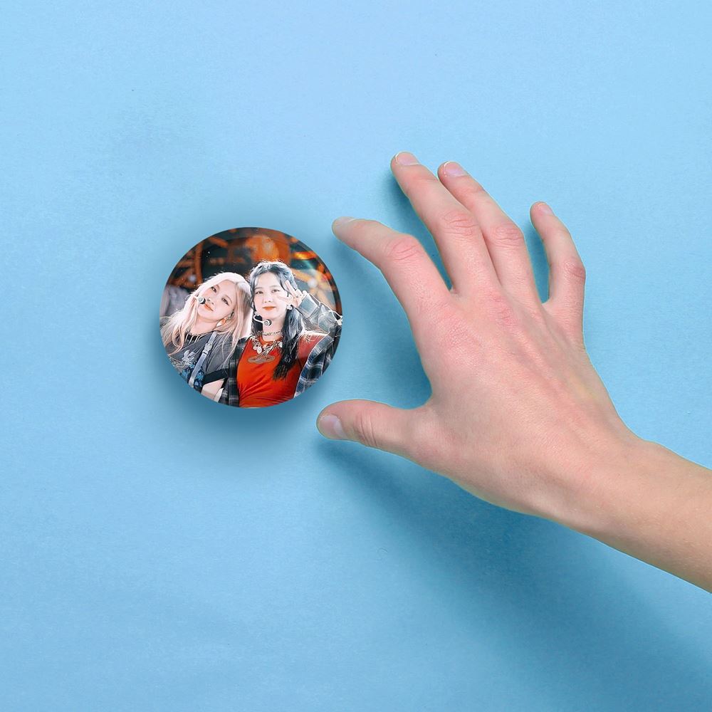آینه های جیبی گروه بلک پینک Black Pink خندالو دایره ای به قطر 7.5 سانتی متر می باشد که نه خیلی بزرگ و غیر قابل استفاده در کیف آرایشی ست و نه خیلی کوچک که تصویر خاصی در آن مشاهده نشود. سایزی استاندارد و کارآمد دارد و مناسب قرار گیری در کیف لوازم آرایش و کیف های کوچک دستی نیز هست.