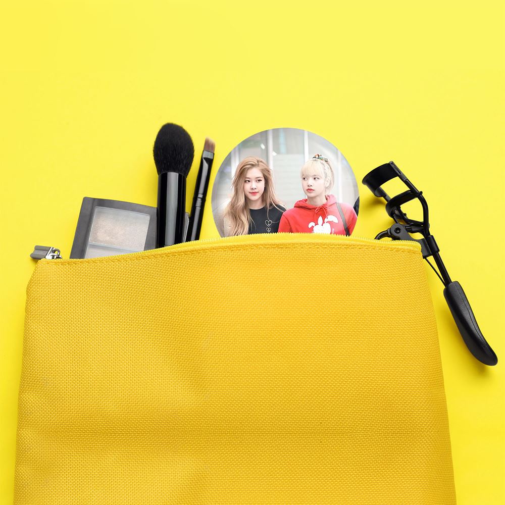 آینه های جیبی گروه بلک پینک Black Pink خندالو دایره ای به قطر 7.5 سانتی متر می باشد که نه خیلی بزرگ و غیر قابل استفاده در کیف آرایشی ست و نه خیلی کوچک که تصویر خاصی در آن مشاهده نشود. سایزی استاندارد و کارآمد دارد و مناسب قرار گیری در کیف لوازم آرایش و کیف های کوچک دستی نیز هست.