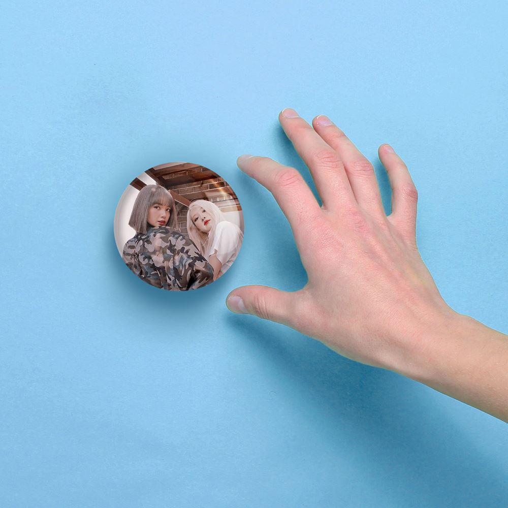 آینه های جیبی گروه بلک پینک Black Pink خندالو دایره ای به قطر 7.5 سانتی متر می باشد که نه خیلی بزرگ و غیر قابل استفاده در کیف آرایشی ست و نه خیلی کوچک که تصویر خاصی در آن مشاهده نشود. سایزی استاندارد و کارآمد دارد و مناسب قرار گیری در کیف لوازم آرایش و کیف های کوچک دستی نیز هست.