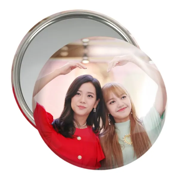 آینه های جیبی گروه بلک پینک Black Pink خندالو دایره ای به قطر 7.5 سانتی متر می باشد که نه خیلی بزرگ و غیر قابل استفاده در کیف آرایشی ست و نه خیلی کوچک که تصویر خاصی در آن مشاهده نشود. سایزی استاندارد و کارآمد دارد و مناسب قرار گیری در کیف لوازم آرایش و کیف های کوچک دستی نیز هست.