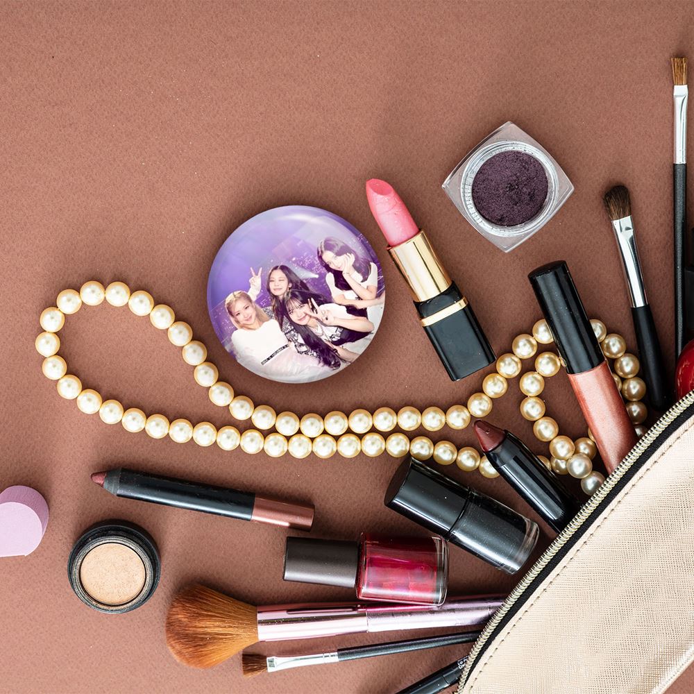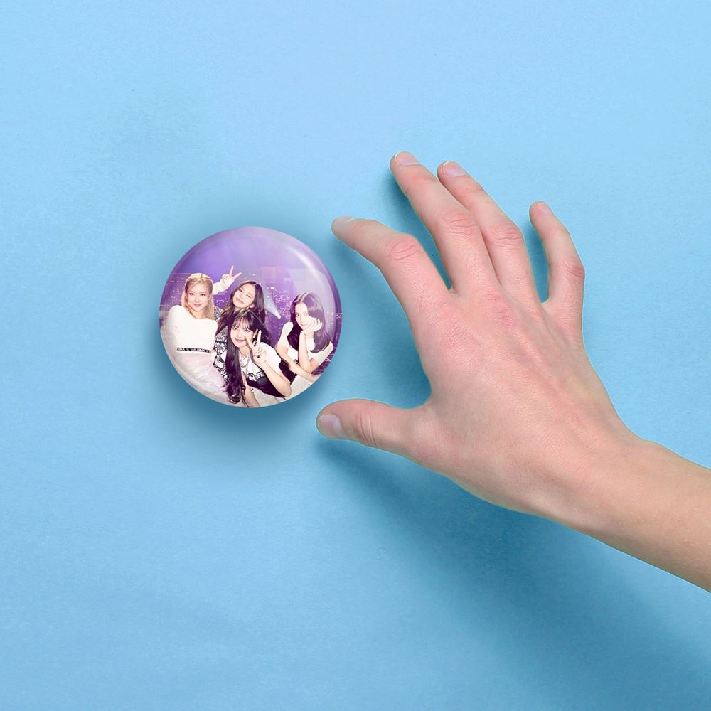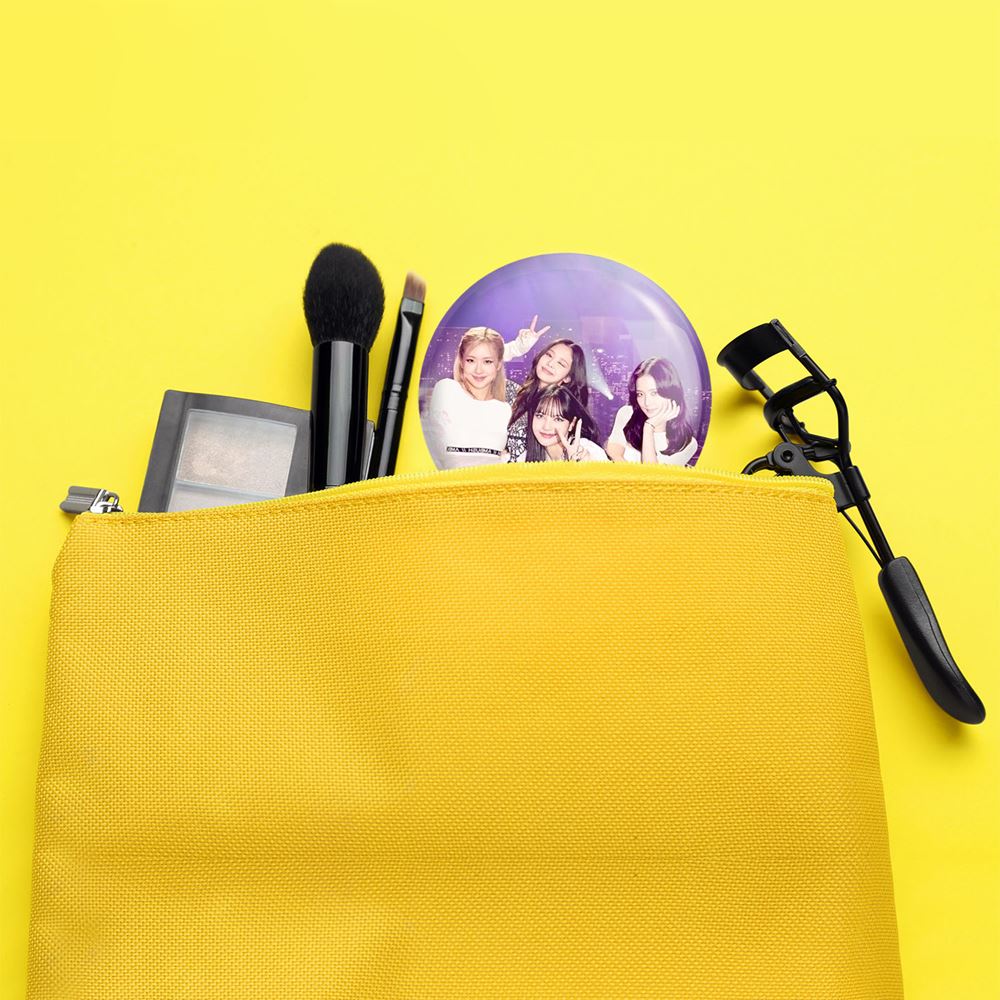 آینه های جیبی گروه بلک پینک Black Pink خندالو دایره ای به قطر 7.5 سانتی متر می باشد که نه خیلی بزرگ و غیر قابل استفاده در کیف آرایشی ست و نه خیلی کوچک که تصویر خاصی در آن مشاهده نشود. سایزی استاندارد و کارآمد دارد و مناسب قرار گیری در کیف لوازم آرایش و کیف های کوچک دستی نیز هست.