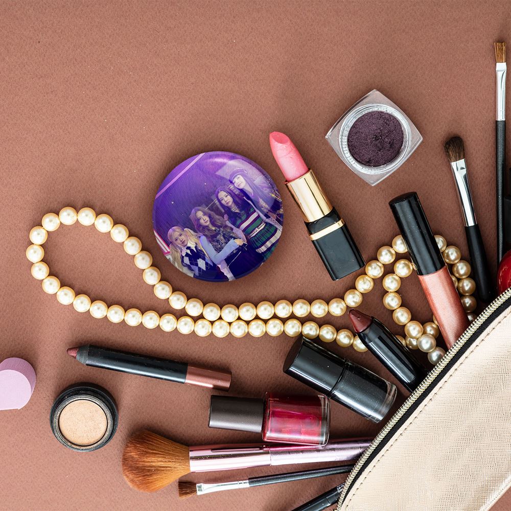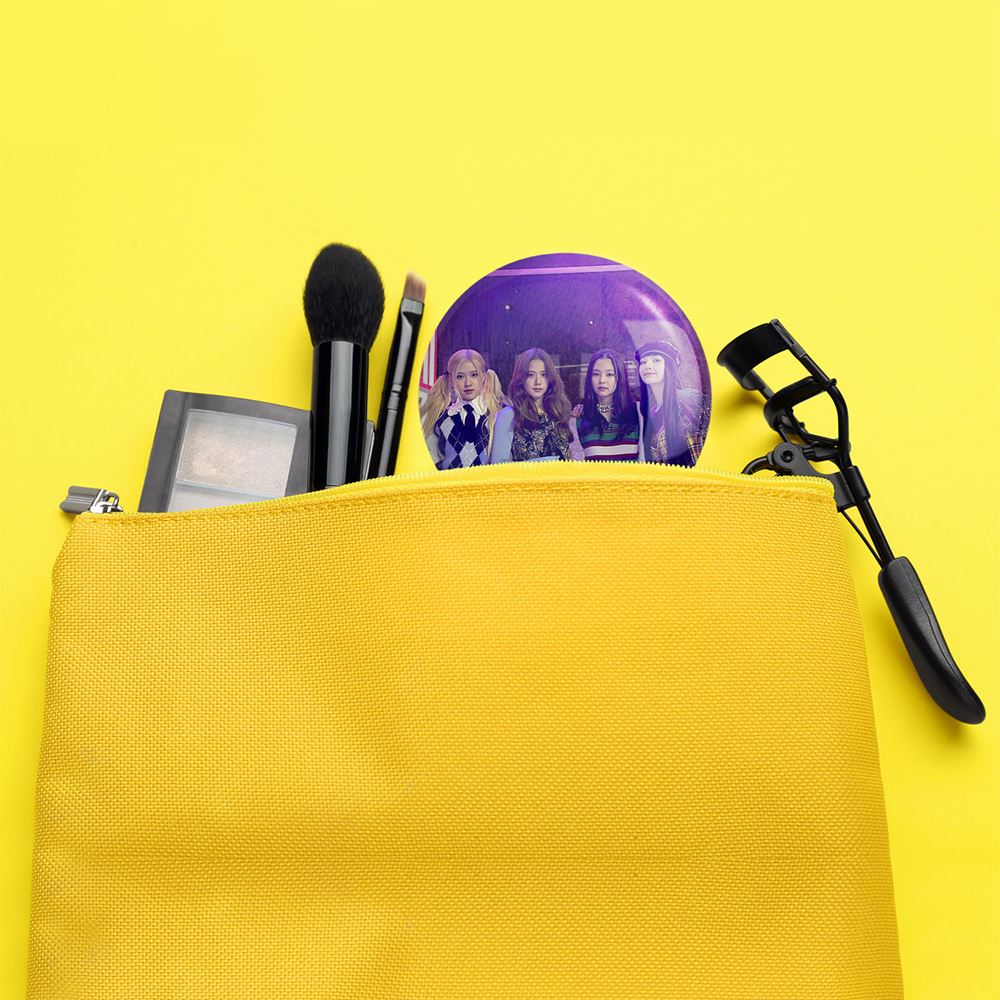 آینه های جیبی گروه بلک پینک Black Pink خندالو دایره ای به قطر 7.5 سانتی متر می باشد که نه خیلی بزرگ و غیر قابل استفاده در کیف آرایشی ست و نه خیلی کوچک که تصویر خاصی در آن مشاهده نشود. سایزی استاندارد و کارآمد دارد و مناسب قرار گیری در کیف لوازم آرایش و کیف های کوچک دستی نیز هست.