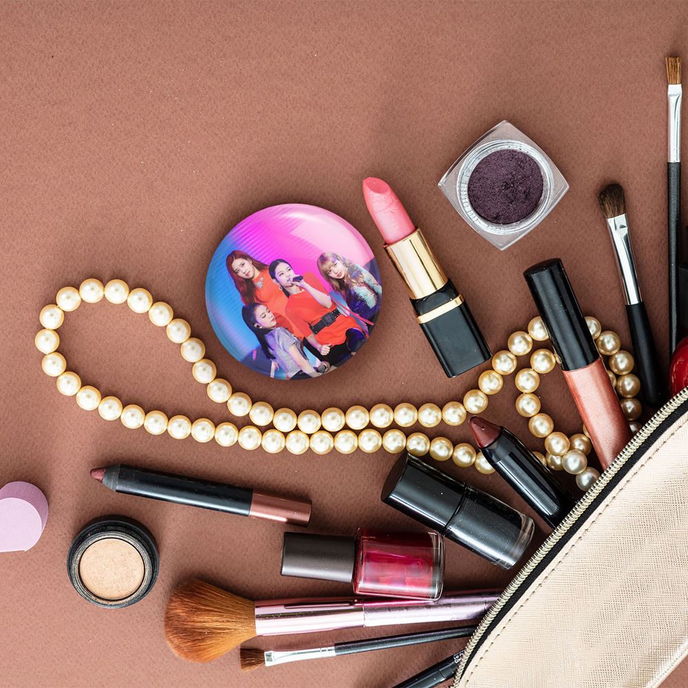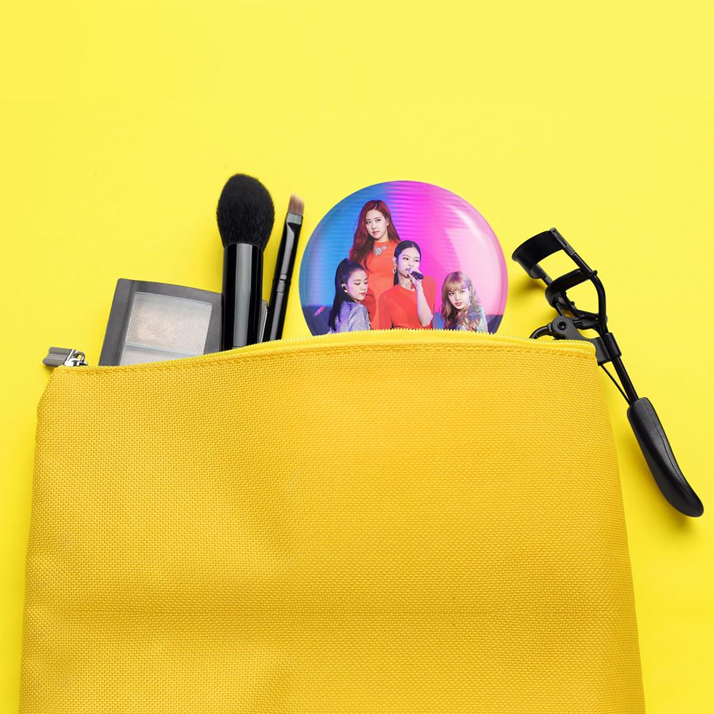 آینه های جیبی گروه بلک پینک Black Pink خندالو دایره ای به قطر 7.5 سانتی متر می باشد که نه خیلی بزرگ و غیر قابل استفاده در کیف آرایشی ست و نه خیلی کوچک که تصویر خاصی در آن مشاهده نشود. سایزی استاندارد و کارآمد دارد و مناسب قرار گیری در کیف لوازم آرایش و کیف های کوچک دستی نیز هست.