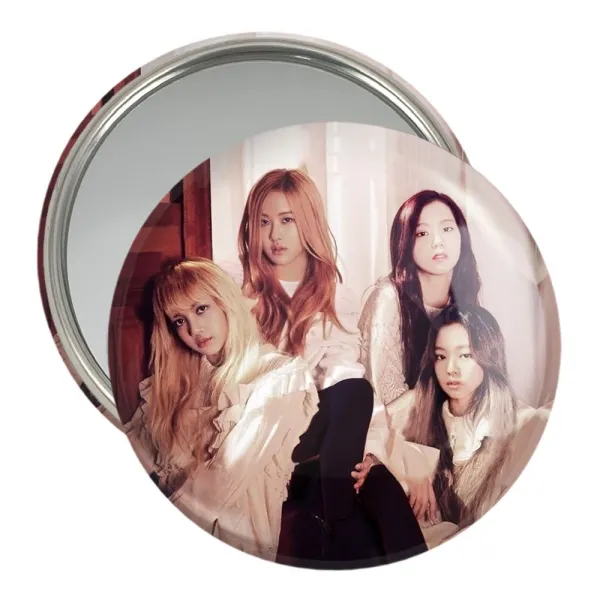 آینه های جیبی گروه بلک پینک Black Pink خندالو دایره ای به قطر 7.5 سانتی متر می باشد که نه خیلی بزرگ و غیر قابل استفاده در کیف آرایشی ست و نه خیلی کوچک که تصویر خاصی در آن مشاهده نشود. سایزی استاندارد و کارآمد دارد و مناسب قرار گیری در کیف لوازم آرایش و کیف های کوچک دستی نیز هست.