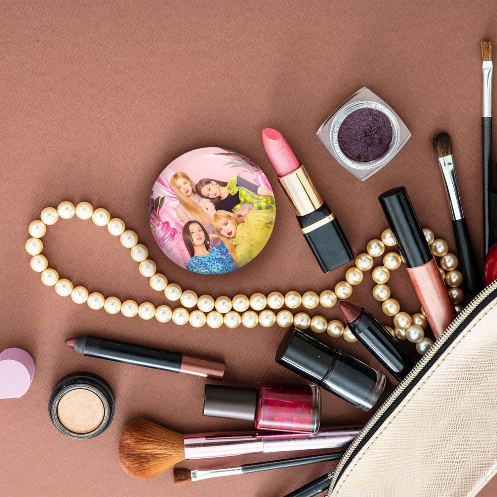آینه های جیبی گروه بلک پینک Black Pink خندالو دایره ای به قطر 7.5 سانتی متر می باشد که نه خیلی بزرگ و غیر قابل استفاده در کیف آرایشی ست و نه خیلی کوچک که تصویر خاصی در آن مشاهده نشود. سایزی استاندارد و کارآمد دارد و مناسب قرار گیری در کیف لوازم آرایش و کیف های کوچک دستی نیز هست.