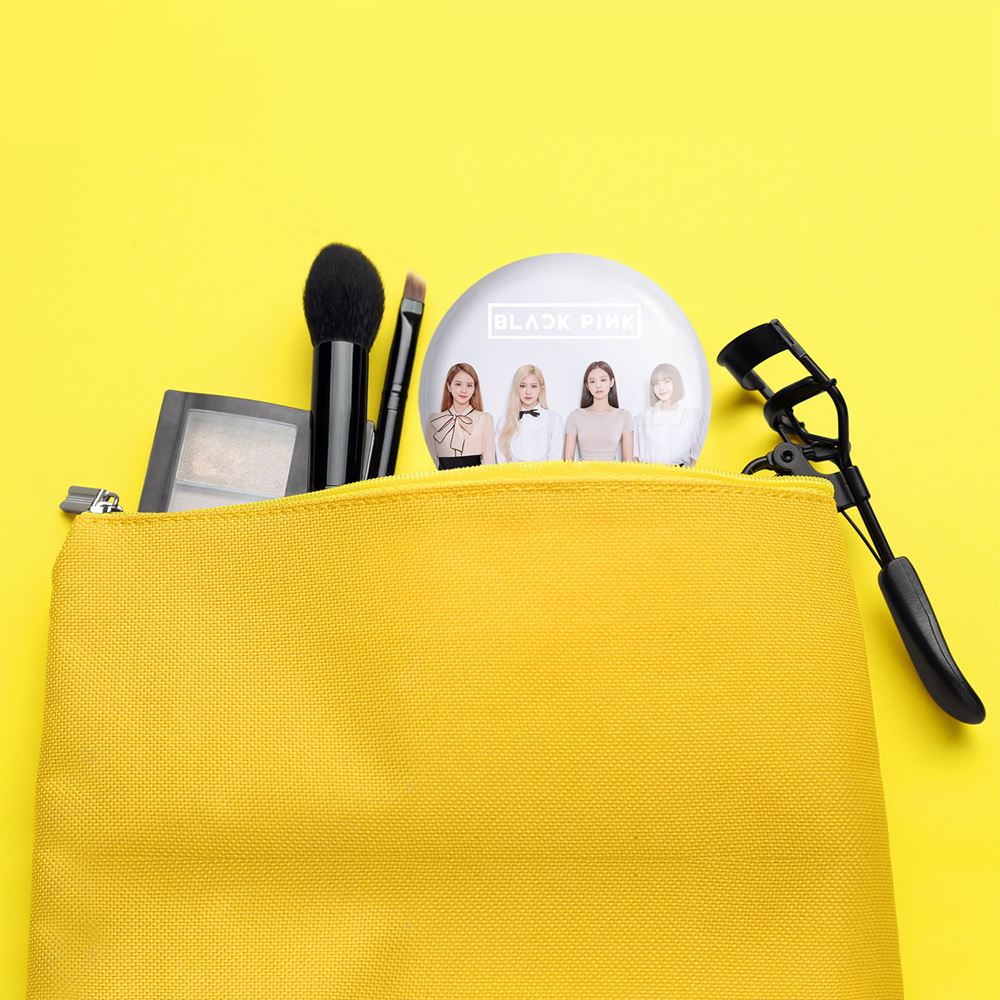 آینه های جیبی گروه بلک پینک Black Pink خندالو دایره ای به قطر 7.5 سانتی متر می باشد که نه خیلی بزرگ و غیر قابل استفاده در کیف آرایشی ست و نه خیلی کوچک که تصویر خاصی در آن مشاهده نشود. سایزی استاندارد و کارآمد دارد و مناسب قرار گیری در کیف لوازم آرایش و کیف های کوچک دستی نیز هست.