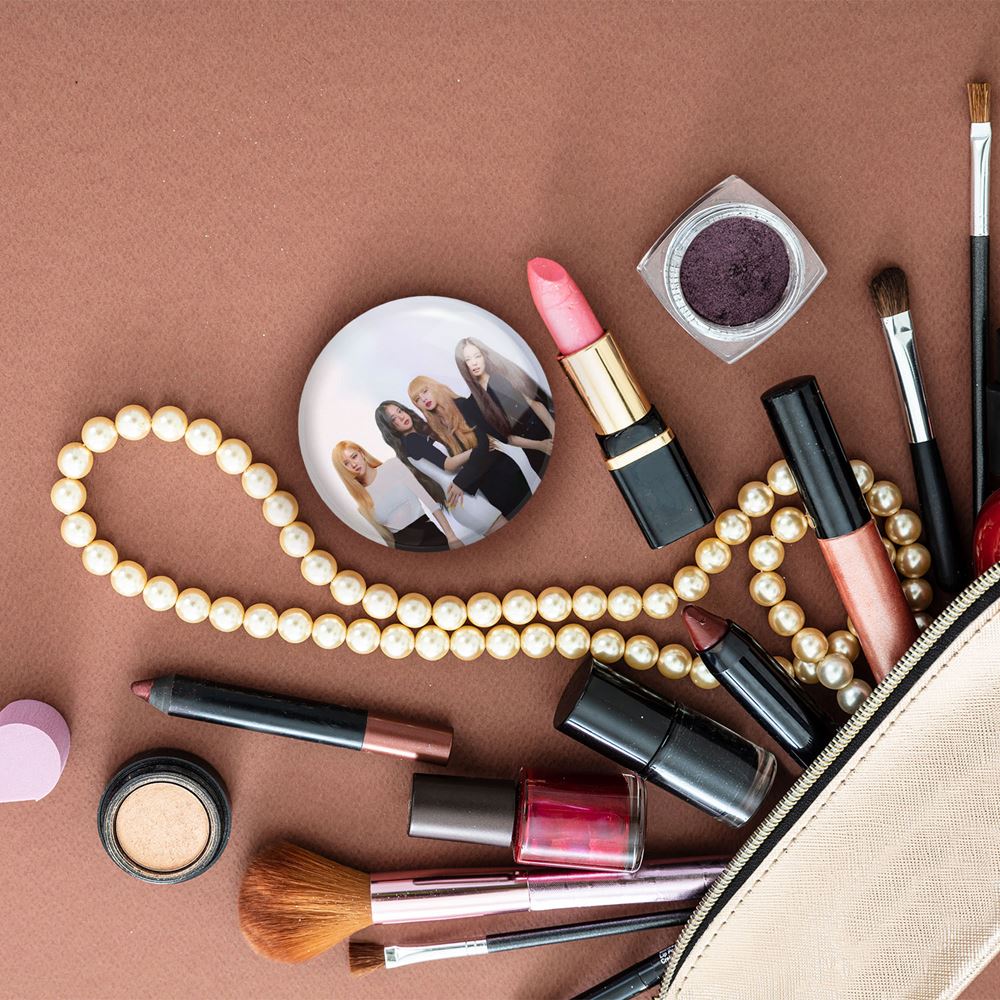 آینه های جیبی گروه بلک پینک Black Pink خندالو دایره ای به قطر 7.5 سانتی متر می باشد که نه خیلی بزرگ و غیر قابل استفاده در کیف آرایشی ست و نه خیلی کوچک که تصویر خاصی در آن مشاهده نشود. سایزی استاندارد و کارآمد دارد و مناسب قرار گیری در کیف لوازم آرایش و کیف های کوچک دستی نیز هست.