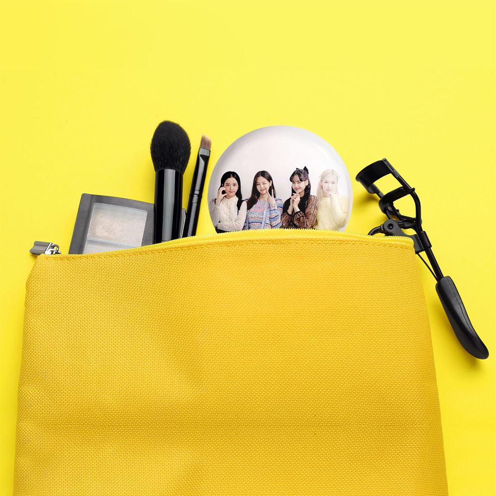 آینه های جیبی گروه بلک پینک Black Pink خندالو دایره ای به قطر 7.5 سانتی متر می باشد که نه خیلی بزرگ و غیر قابل استفاده در کیف آرایشی ست و نه خیلی کوچک که تصویر خاصی در آن مشاهده نشود. سایزی استاندارد و کارآمد دارد و مناسب قرار گیری در کیف لوازم آرایش و کیف های کوچک دستی نیز هست.