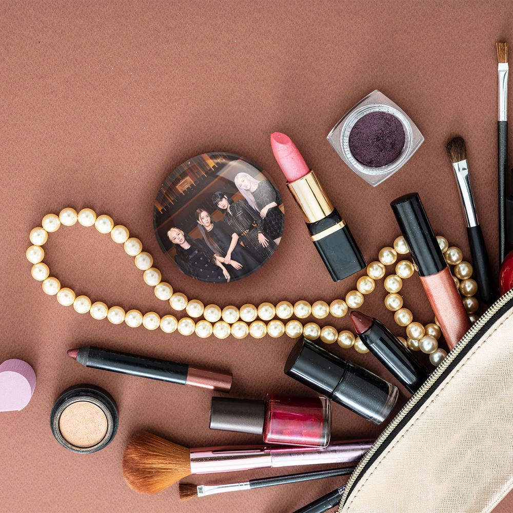 آینه های جیبی گروه بلک پینک Black Pink خندالو دایره ای به قطر 7.5 سانتی متر می باشد که نه خیلی بزرگ و غیر قابل استفاده در کیف آرایشی ست و نه خیلی کوچک که تصویر خاصی در آن مشاهده نشود. سایزی استاندارد و کارآمد دارد و مناسب قرار گیری در کیف لوازم آرایش و کیف های کوچک دستی نیز هست.