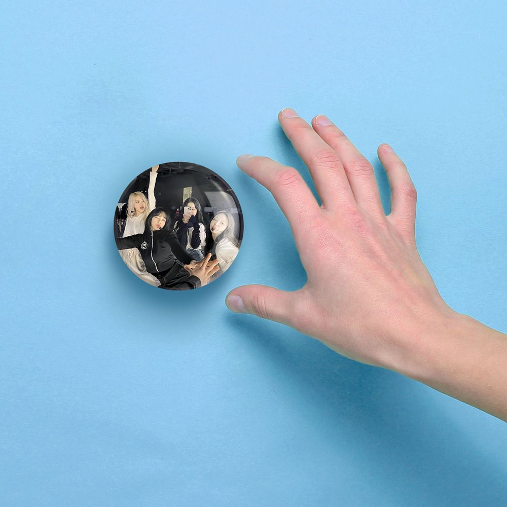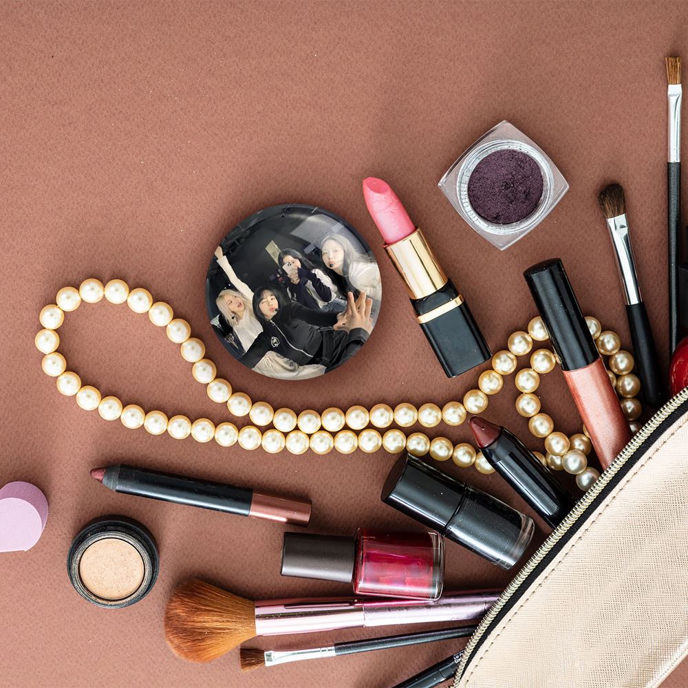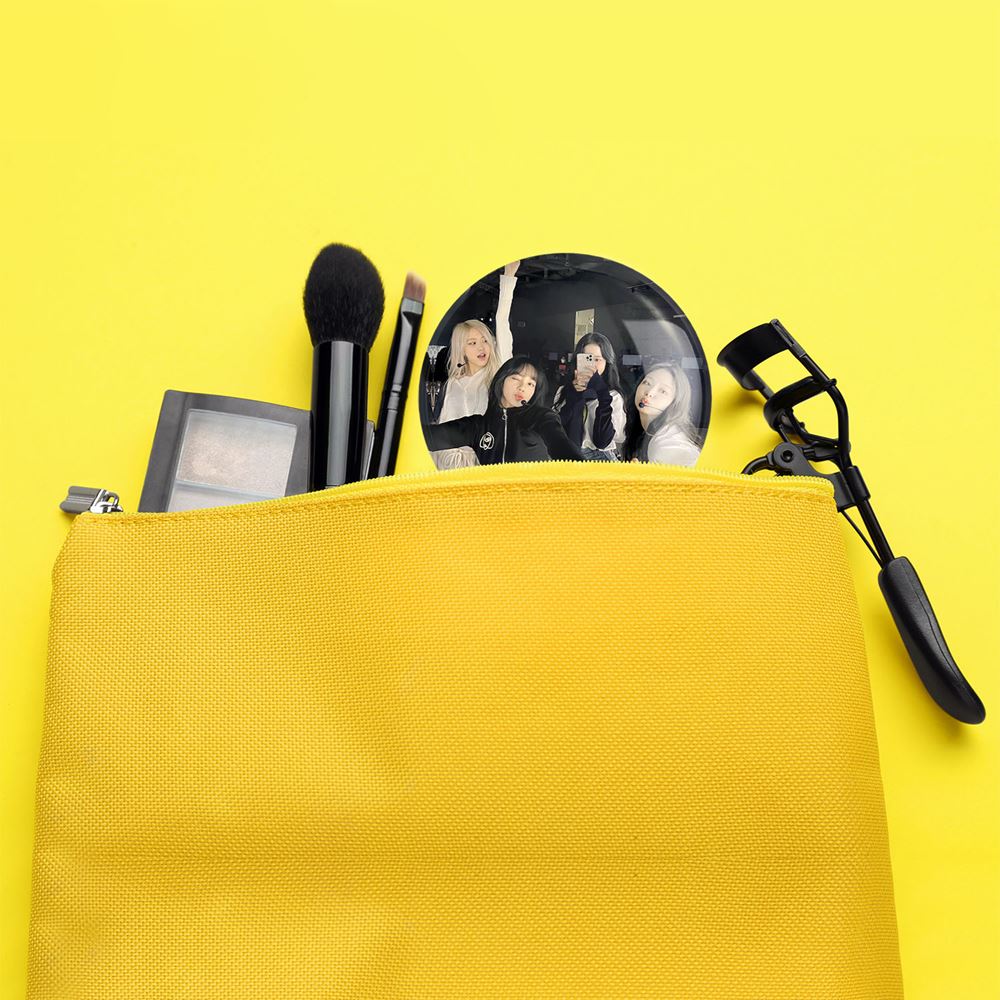 آینه های جیبی گروه بلک پینک Black Pink خندالو دایره ای به قطر 7.5 سانتی متر می باشد که نه خیلی بزرگ و غیر قابل استفاده در کیف آرایشی ست و نه خیلی کوچک که تصویر خاصی در آن مشاهده نشود. سایزی استاندارد و کارآمد دارد و مناسب قرار گیری در کیف لوازم آرایش و کیف های کوچک دستی نیز هست.