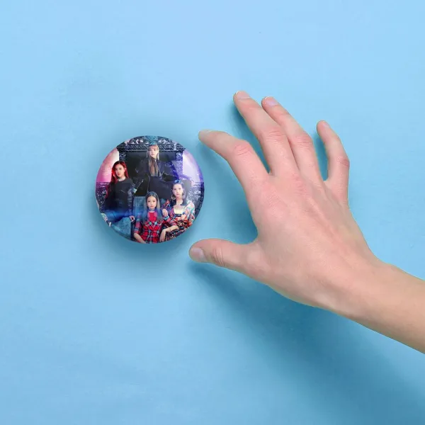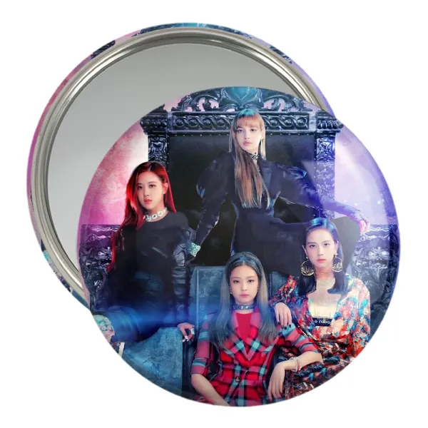 آینه های جیبی گروه بلک پینک Black Pink خندالو دایره ای به قطر 7.5 سانتی متر می باشد که نه خیلی بزرگ و غیر قابل استفاده در کیف آرایشی ست و نه خیلی کوچک که تصویر خاصی در آن مشاهده نشود. سایزی استاندارد و کارآمد دارد و مناسب قرار گیری در کیف لوازم آرایش و کیف های کوچک دستی نیز هست.