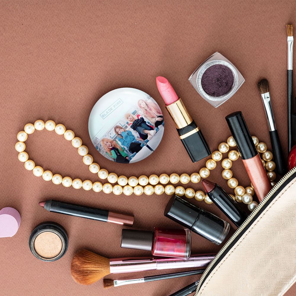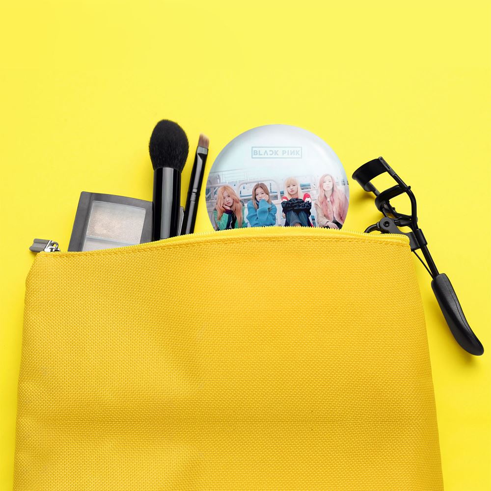 آینه های جیبی گروه بلک پینک Black Pink خندالو دایره ای به قطر 7.5 سانتی متر می باشد که نه خیلی بزرگ و غیر قابل استفاده در کیف آرایشی ست و نه خیلی کوچک که تصویر خاصی در آن مشاهده نشود. سایزی استاندارد و کارآمد دارد و مناسب قرار گیری در کیف لوازم آرایش و کیف های کوچک دستی نیز هست.